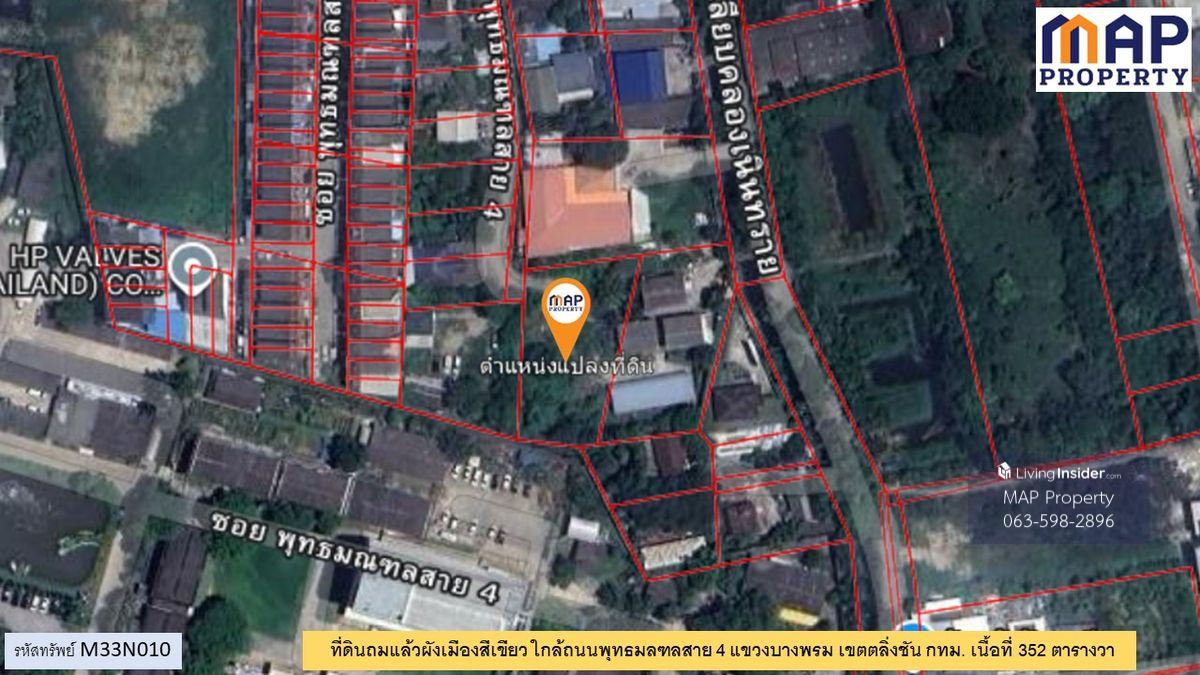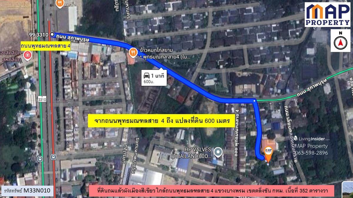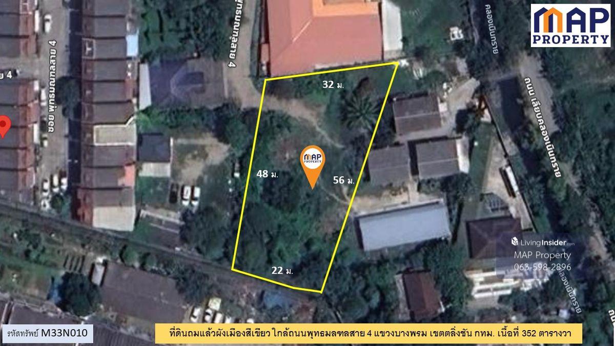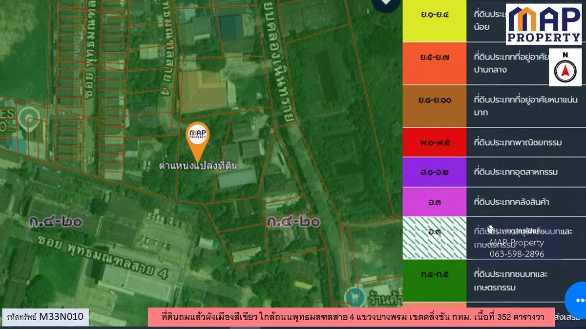 Green-plan land plot, 352 square wah, located in Bang Phrom Subdistrict, Taling Chan District, Bangkok. The plot has a beautiful rectangular shape. Suitable for: - Residential - Business office/warehouse Convenient access: Multiple entrances and exits - Access from Phutthamonthon Sai 4 Road, just 600 meters - Alternatively, take Suphapburut Road and exit onto Thawi Watthana Road for a convenient shortcut to Bangkok. Price: 28,000 baht per square wah - Transfer fee split 50/50 Contact: Wich Contact number