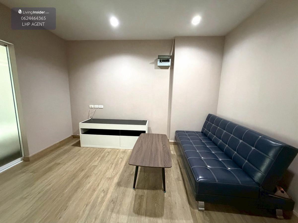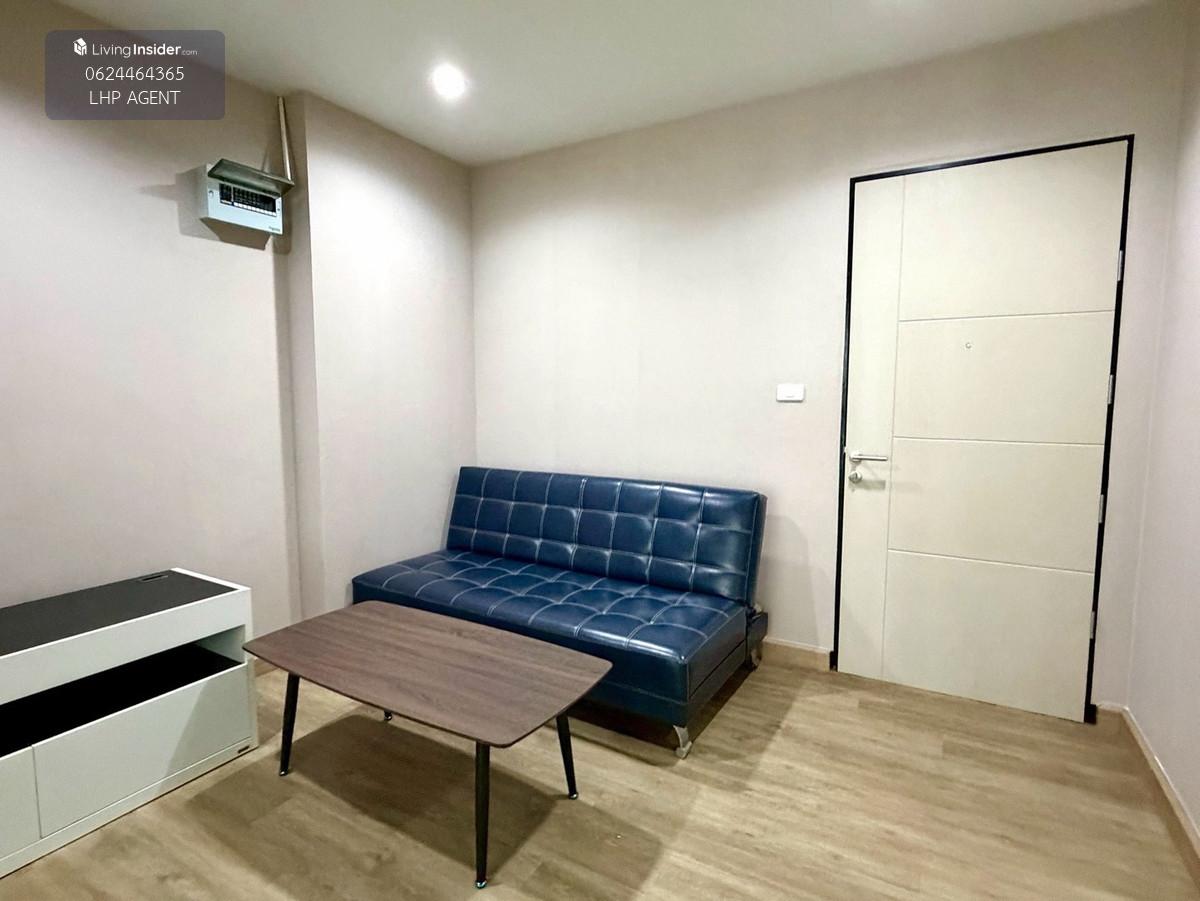 Condo for rent, Happy Condo Ladprao 101, Building E, 2nd floor. Size: 36 sq.m. Fully furnished: work desk, dressing table, wardrobe, sofa. Appliances included: TV, microwave, refrigerator, kettle, wat