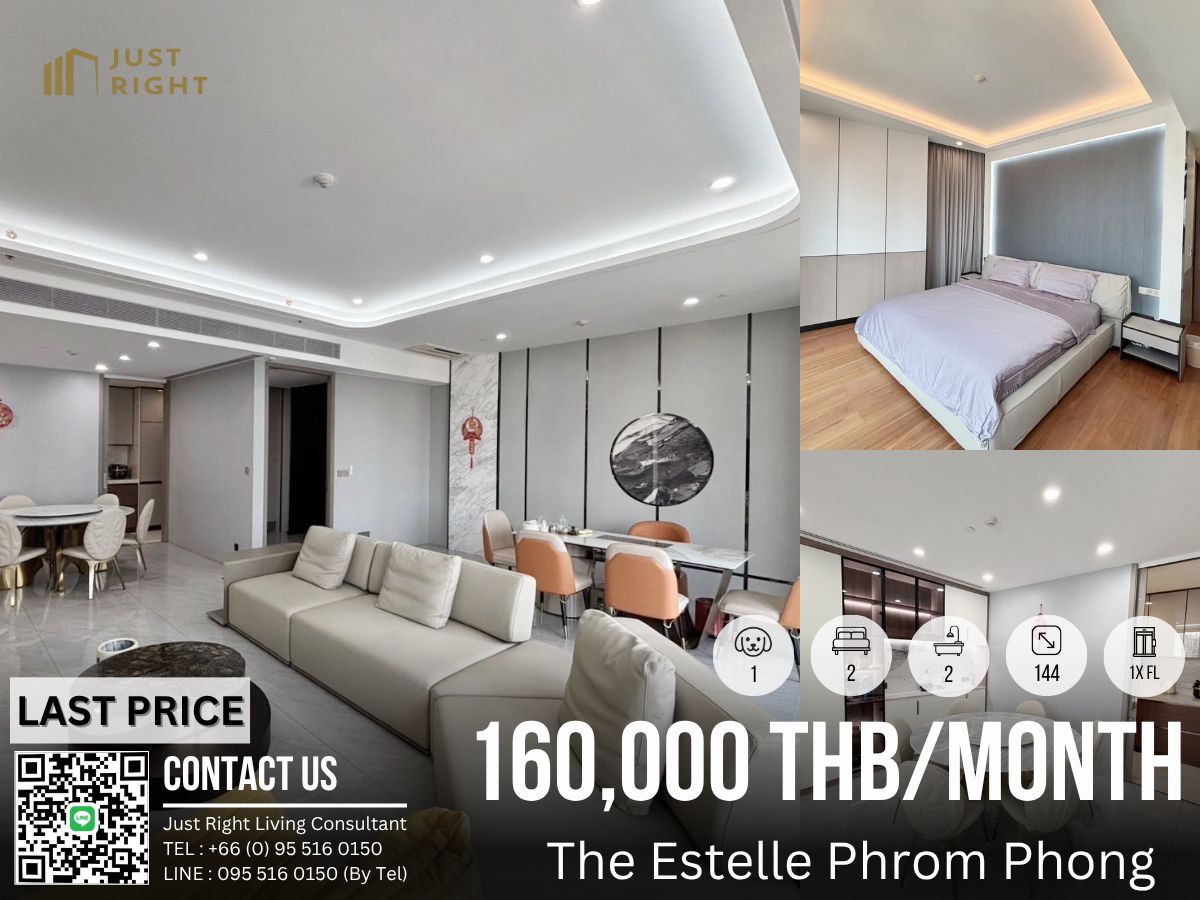 For Rent Pet Friendly The Estelle Phrom Phong 2 Bedroom 2 Bedrooms 144* Sq. Floor 1x Full Electric Appliances, Special discount from 250,000, only 160,000 baht/month, 1 year *Chinese Below* -------------------------------------------------- Type : 2 bedrooms, 2 bathrooms Size : 144* square meter Floor : 1x Furniture and electrical appliances : Fully Furnished Pet Friendly*** Rental price : 160,000 baht per month *1 month in advance, 2 months deposit* *Contract 1 year only* -------------------------------------------------- For viewing appointment or further more information please contact Tel : Contact number Line : @justrightlc WhatsApp : Contact number WeChat ID : k Contact number Website : www.justrightlc.com ** If you looking for renting or purchasing condo for in a nearby location, Please feel free to contact us for more information or consultation ** ** If you prefer to rent out or sell out your condo, Please feel free to contact us or consultation ** -------------------------------------------------- 户型 : 2 间卧室 2 间浴室 面积:144* 平方米 楼层:1x 家具电器:全包,可以马上入住 宠物友好 租金:每月 160,000 泰铢 入住前付款:1 租+ 2 押金 最短合同期 1 年 -------------------------------------------------- 如果您有兴趣需要进一步的资料,约看房,请您立即联络,我们有中文服务销售 电话: Contact number 线路:@justrightlc 瓦次艾普 : Contact number 微信号:k Contact number (扫二维码)网站:www.justrightlc.com ** 如果您在寻找附近公寓出租或购买,请您联系我们获取更多信息或咨询 ** ** 如果您有房源需要出租/出售 请您联系我们获取更多信息**