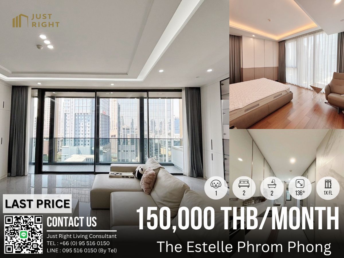 For rent, Pet Friendly The Estelle Phrom Phong, 2 bedrooms, 2 bathrooms, 136* sq m, 1x floor, Full Electric Appliances, Special discount from 230,000, only 150,000 baht/month, 1 year *Chinese Below* -------------------------------------------------- Type : 2 bedrooms, 2 bathrooms Size : 136* square meter Floor : 1x Furniture and electrical appliances : Fully Furnished Pet Friendly*** Rental price : 150,000 baht per month *1 month in advance, 2 months deposit* *Contract 1 year only* -------------------------------------------------- For viewing appointment or further more information please contact Tel : Contact number Line : @justrightlc WhatsApp : Contact number WeChat ID : k Contact number Website : www.justrightlc.com ** If you looking for renting or purchasing condo for in a nearby location, Please feel free to contact us for more information or consultation ** ** If you prefer to rent out or sell out your condo, Please feel free to contact us or consultation ** -------------------------------------------------- 户型 : 2 间卧室 2 间浴室 面积:136* 平方米 楼层:1x 家具电器:全包,可以马上入住 宠物友好 租金:每月 150,000 泰铢 入住前付款:1 租+ 2 押金 最短合同期 1 年 -------------------------------------------------- 如果您有兴趣需要进一步的资料,约看房,请您立即联络,我们有中文服务销售 电话: Contact number 线路:@justrightlc 瓦次艾普 : Contact number 微信号:k Contact number (扫二维码)网站:www.justrightlc.com ** 如果您在寻找附近公寓出租或购买,请您联系我们获取更多信息或咨询 ** ** 如果您有房源需要出租/出售 请您联系我们获取更多信息**