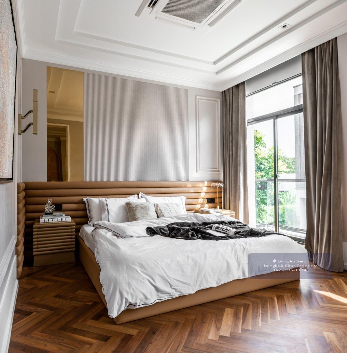 Rent / Sale The Gentry Sukhumvit 101/1 Luxury House for only 10 minutes to Punnawithi Decorated by Kirin Design & Living ** Receive pets Description :: - Land: 80 wa (? 580 sqm (? 5 - Guest Room: 1 - Kitchen: 1 - Housewifes room: 1 - Parking: 4 - South - MASTER ROOM WALK-in Closet - Must add the Play Room room to be modified to the upper bedroom as a workplace (? 6.7 meters - Inside is an open plan connected between Play Room & Elderly Room Facilities :: - Swimming pool - Club house - Public park - 24 hour security system Nearby locations : Punnawithi Anglo, Wells, Berkeley Central Bangna ------------------------------------------------ RENT: 400,000 THB contract 2 years Sale: 59,000,000 thb -------------------------------- Contact number Line: big Contact number Bangkok Elite Property Welcome to buy, sell, sell, rent, house, real estate Provide advice on bank loans