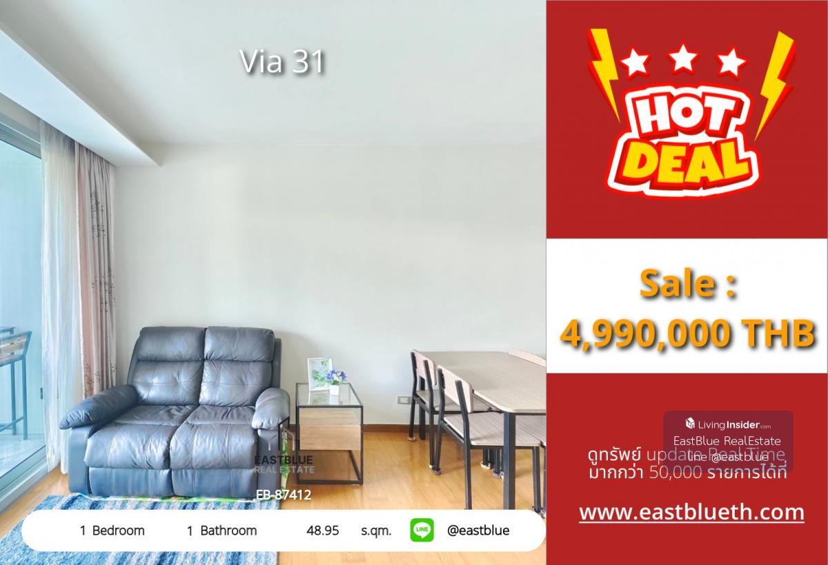 Project : Via 31 ID : EB-87412 1 Bed 1 Baht Size :48.95 sqm Selling Price : 4,990,000 - Contact, Appointment for viewing. Line: @eastblue / https://lin.ee/yNwHbFs WhatsApp: Contact number - Eastblue,
