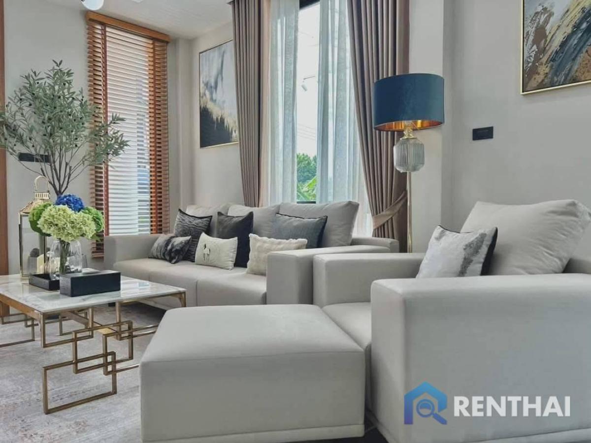 Listing code: #RT02418 Introducing The Modern Tropical Style, a unique house located in Pattaya, Thailand. Featuring 4 bedrooms and 4 bathrooms spread across 462 sq. m. of living space, this is a perfect opportunity to own a beautiful home in an excellent location. Enjoy being close to all the amenities that Pattaya has to offer while enjoying the peace and quiet of your own private home. Sale price: 9,900,000 baht - 4 bedrooms, 4 bathrooms - Land size 116 sq.w. - Usable area 462 sq.m. - 2 floors - Pool view - Thai quota - Fully furnished Facilities: - Pet friendly - Private pool - Corner Unit - Pool Access - Private Garden - Garden Access - European kitchen Location: Huai Yai, Pattaya For more details feel free to contact us by Tel: Contact number WhatsApp: Contact number Line ID: renthai.pattaya3 https://line.me/ti/p/MmOMozF0Ja (click the link to add line) ……………………………………………………………………… Website: https://renthai.com Facebook Page: https://www.facebook.com/renthai.pattaya Line Official: @renthai Email: Contact email Renthai - your reliable assistant in buying, selling and investing in real estate in Pattaya.
