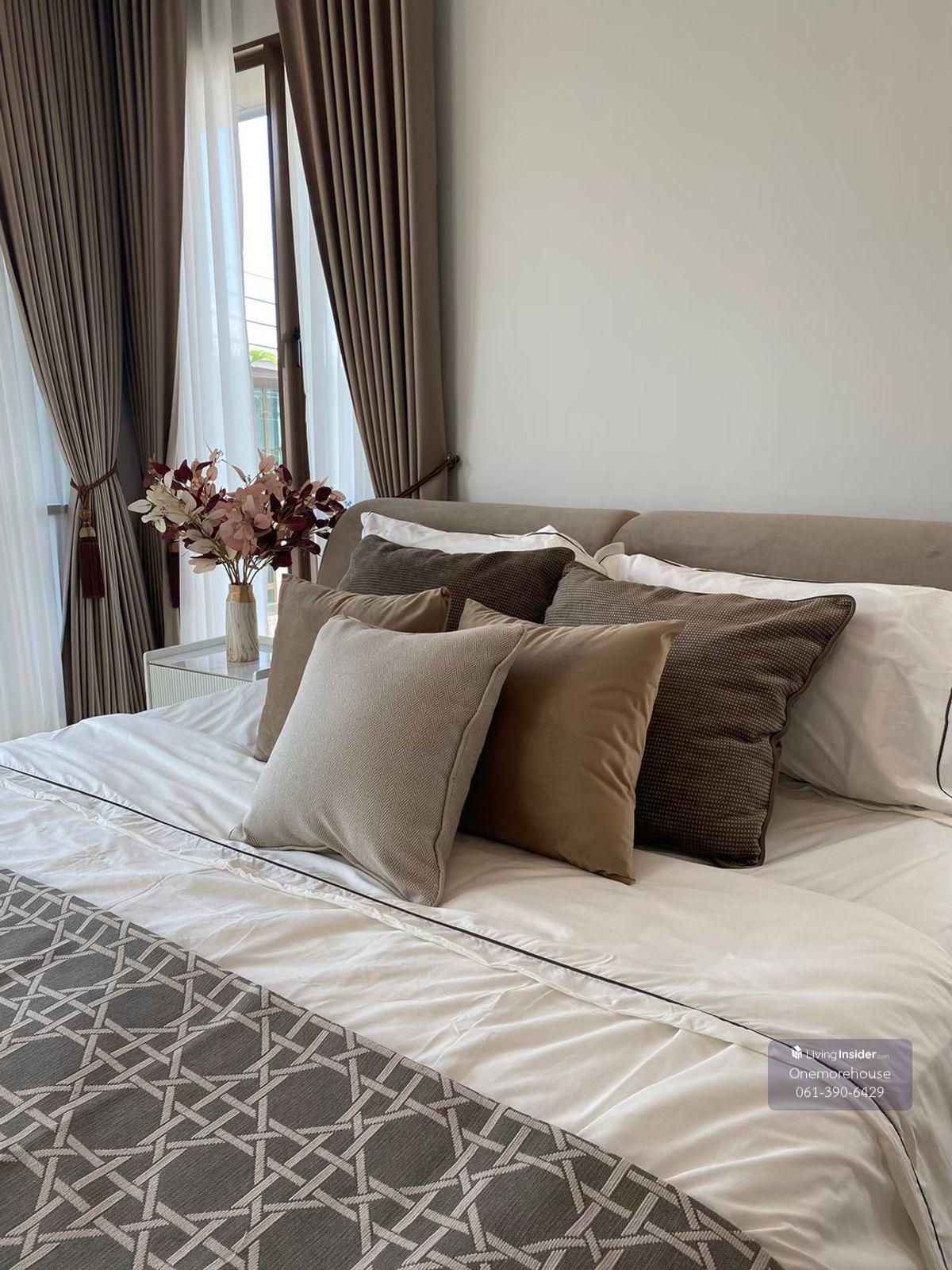 Burasiri Krungthep Kreetha for rent 4 bedrooms | 5 bathrooms | 1 Thai kitchen | 1 maid's room | 3 parking spaces Examination area: 300 sq m Area: 77.3 sq wah Located near the entrance, in a private alley next to a garden and communal swimming pool Rent: 220,000 baht/month - Foreigners welcome - Company registration not accepted - Pets not allowed Contact Danny Tel: Contact number Contact number Line official: @onemorehouse WhatsApp: Contact number