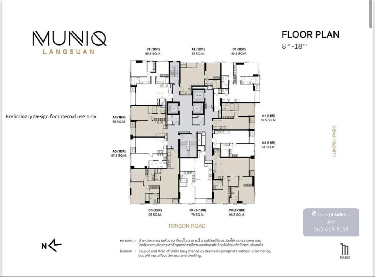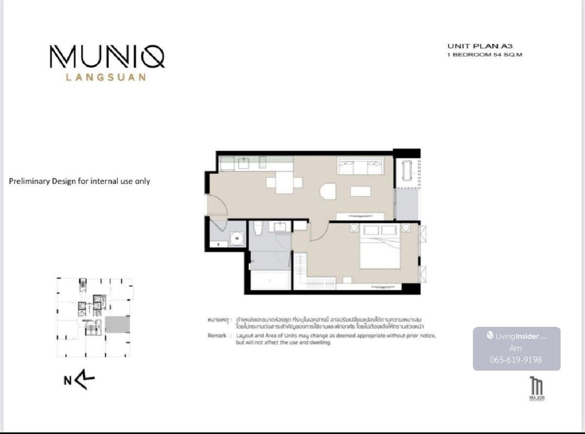 Muniq Langsuan: 54.58 SQM. 1Bed 1Bath Sell: 17,000,000 Ret: 65,000/MET. AM: 0656199198