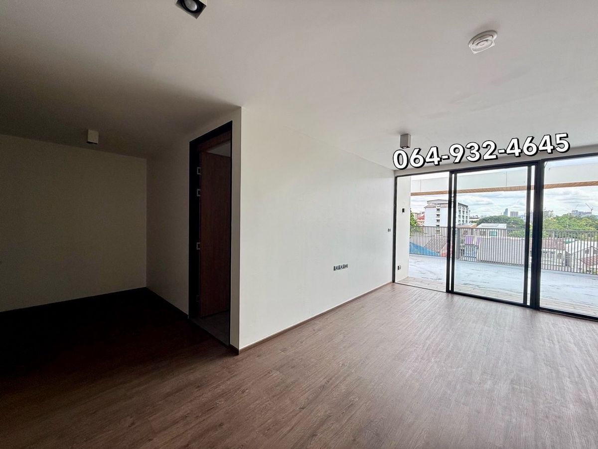 The Element Rama9, a luxurious home office, 7.5 meters wide 5 layers with lift Can park 6-8 cars With an automatic fence 57 sq.w. 560 sq.w. Rental 135,000/month, only 100 meters to The Nine Rama9. Contact 064-932-4645 ken.