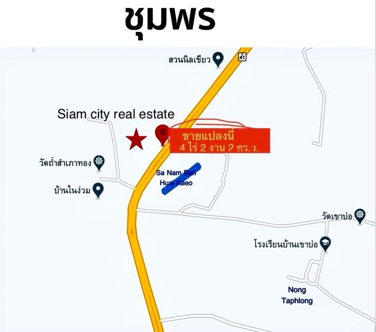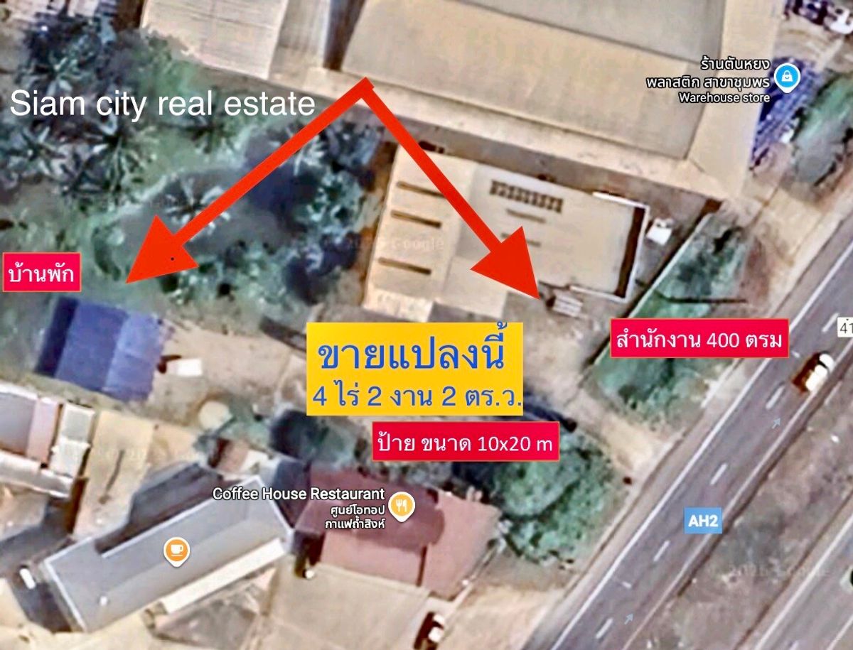 Land for sale with buildings as offices and warehouses. With staff houses 🏠 Ready to continue the business immediately, water system, ready ⛳️ on a good location on Petchkasem Road, Thung Kha Subdistrict, Mueang Chumphon District, Chumphon Province ⛳️ on an area of ​​4 rai 2 nations (1,802 sq.w.) ⛳️ Width of 47 meters Meter 👉 At the price of 23 million baht 🍀 Suitable for 🏁 Made into an office / company 🏁 Warehouse warehouse / distribution center 🏁 Showroom 🏁 Gas station 🏁 Buy for investment ☎️ Interested please contact Khun Suthathip Tel/LINE Contact number