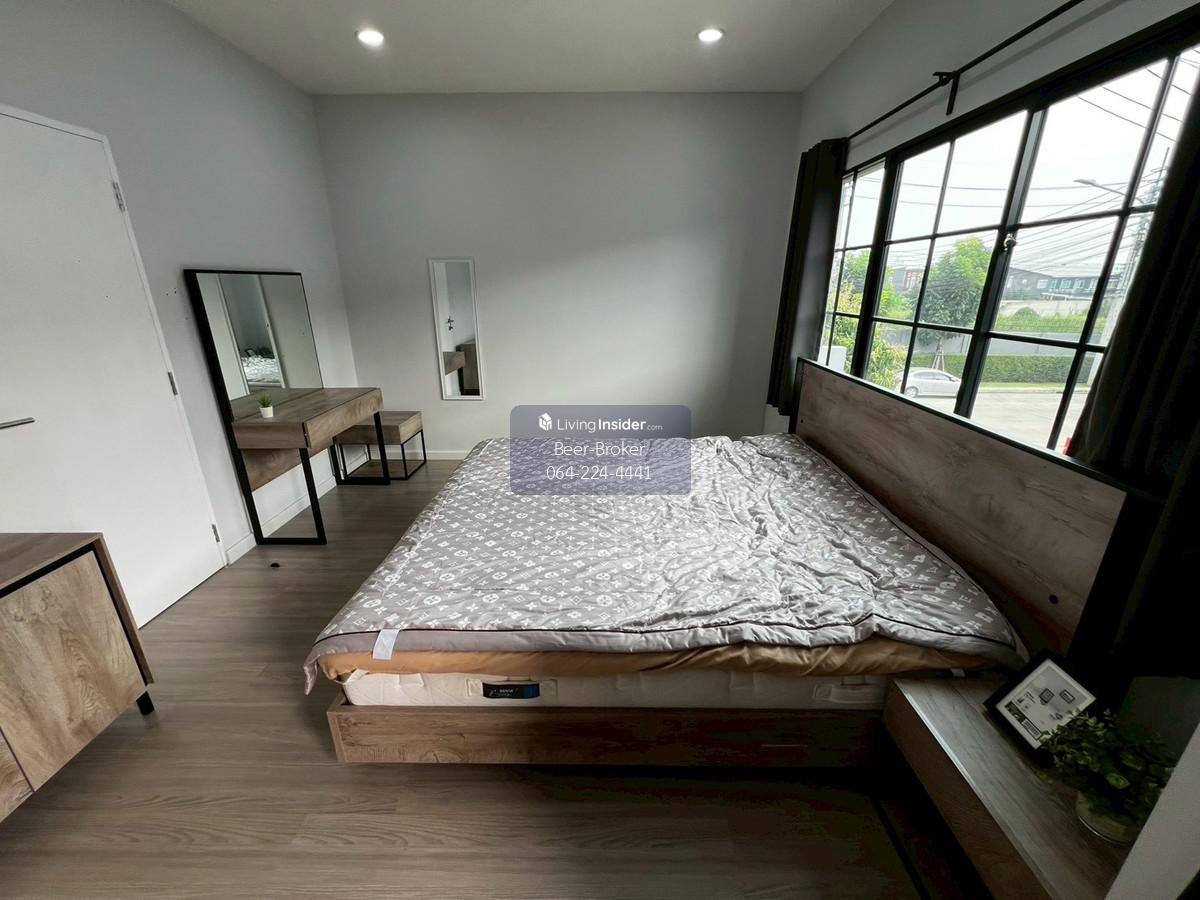 Beautifully 4-bedroom townhome near the Social Security Office in Pathum Thani, close to the expressway, pet-friendly. Siri Place Village Rangsit - Large 2-story townhome - 133 square meters of usable space - 4 bedrooms + 3 bathrooms - 1 living room + 1 kitchen + 1 dining room - Upstairs: 3 bedrooms + 2 bathrooms - Downstairs: 1 bedroom + 1 bathroom - 5.7-meter wide frontage with parking for 2 cars - Fully furnished, ready to move in, including built-in kitchen and bedroom - Living room with wallpaper, genuine leather L-shaped sofa, display shelves, and loft-style TV - Master bedroom with 6-foot bed with mattress, wardrobe, dressing table, and TV stand - Only 56 units in the project For more information, please contact us at Khun Beer : Call Contact number Line ID : @beerbroker (please include @) or Click 👉 https://lin.ee/pqQqdgP At your service.