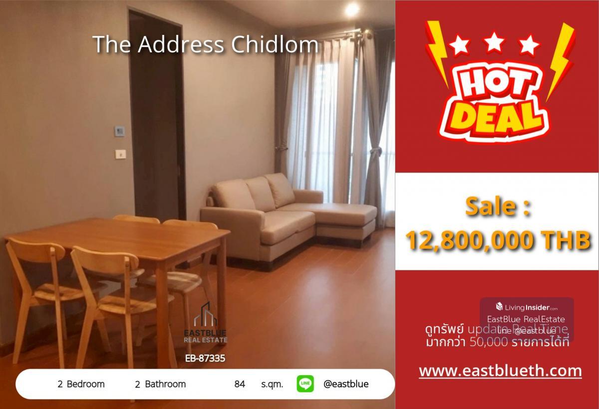 For sale: Luxurious condo in the city center at The Address Chidlom. 2 bedrooms, 2 bathrooms, usable area of 84 sq.m. Sale price only 12,800,000 THB Prime location next to Chidlom BTS, convenient tran