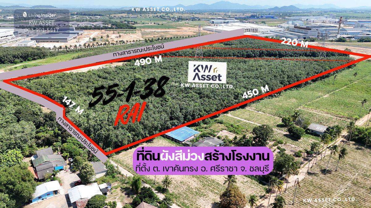 Land for sale, build a factory 55-1-38 rai, purple pattern plan 💜 at Khao Khan Song Subdistrict, Si Racha District, Chon Buri Province