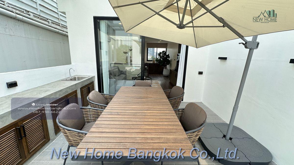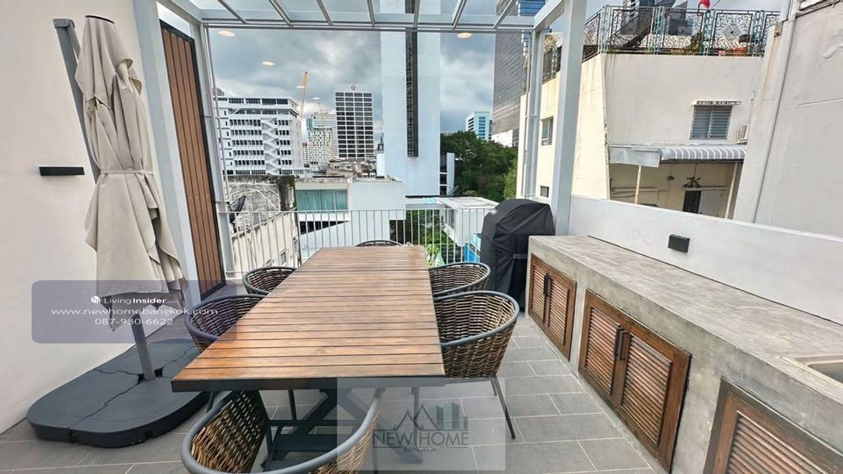 Luxury Townhouse with Private Rooftop – The Best of Sathorn-Silom Area ID 14486 Details Total size 240 sq.m. 3 bedrooms 2 bathrooms and 1 additional bathroom and a private rooftop This 5-storey residence offers spacious living and working space, ideally located just a 5-minute walk from the BTS Skytrain station and minutes away from the vibrant restaurants of Sathorn Soi 10-12. Unit Features Fully furnished including washing machine, dryer, TV, dishwasher and BBQ (Weber) Fully renovated in 2024, designed by a renowned Bangkok architect Rooftop 2 balconies Fully equipped Western kitchen Maid's room / office / storage room Indoor parking (1) Rental price: ฿120,000 per month – Minimum 1 year contract
