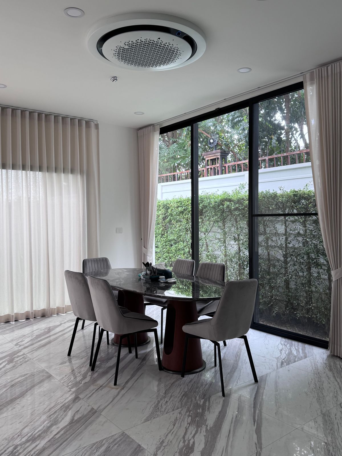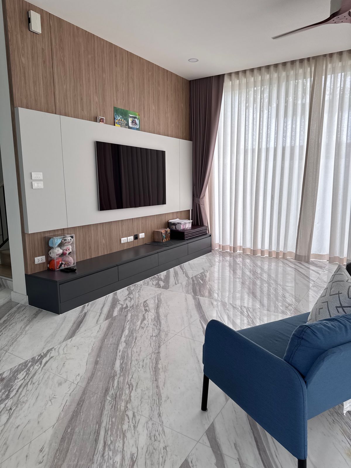 Area 61.1 square wah, usable area 240 square meters. The house has 4 bedrooms, 5 bathrooms, 4 air conditioners, 1 kitchen, burglar alarm, parking for 2 cars *Tostem doors throughout the house, marble floors** Convenient transportation. There are many ways to enter and exit. You can easily exit onto Nakhon In Road or Kanchanaphisek Road. Near the expressway If interested, call Contact number or Line ID: aomsuni to make an appointment to come see the house.