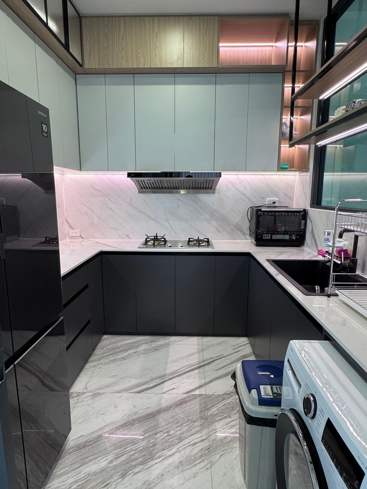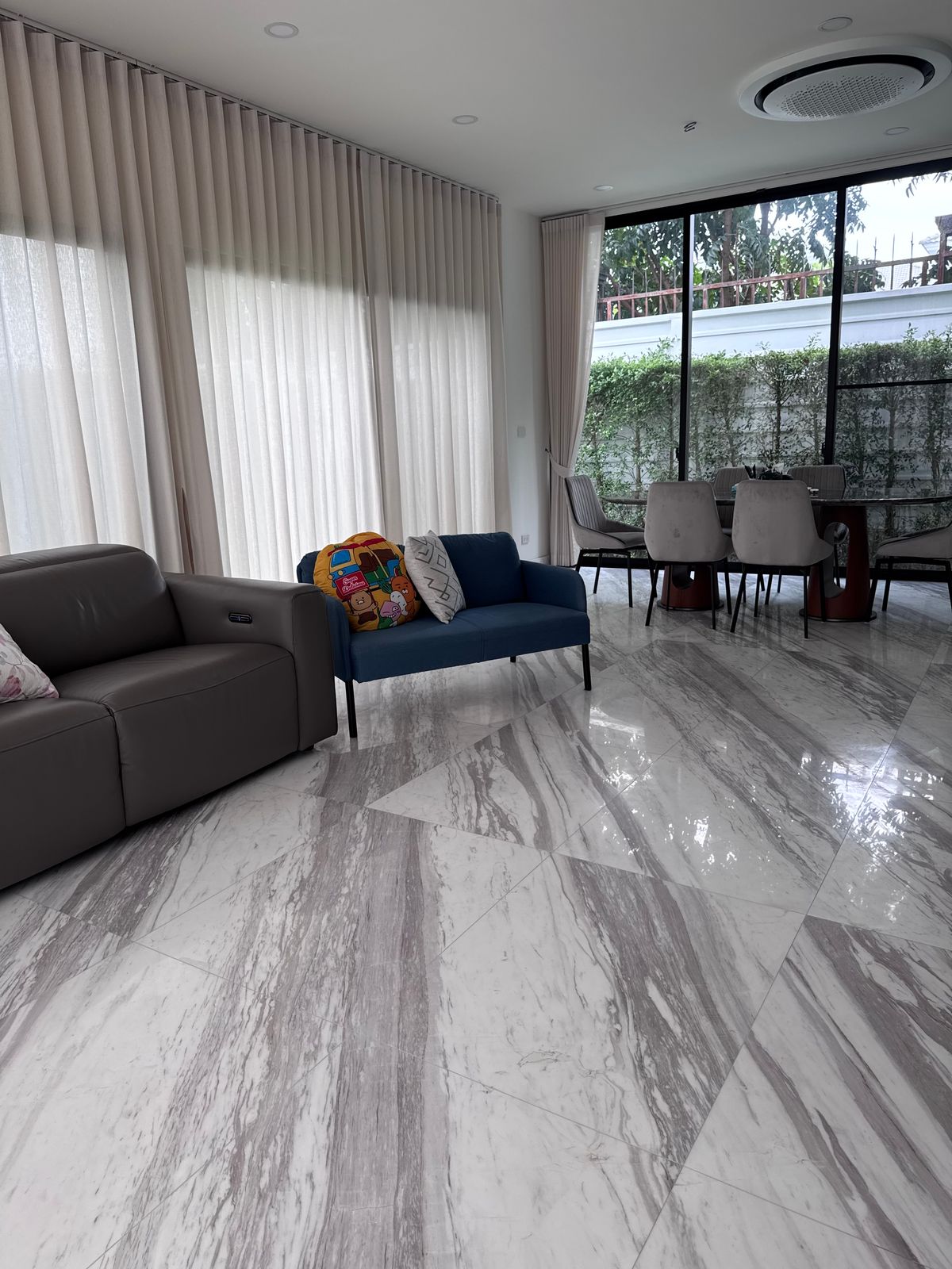 Area 61.1 square wah, usable area 240 square meters. The house has 4 bedrooms, 5 bathrooms, 4 air conditioners, 1 kitchen, burglar alarm, parking for 2 cars *Tostem doors throughout the house, marble