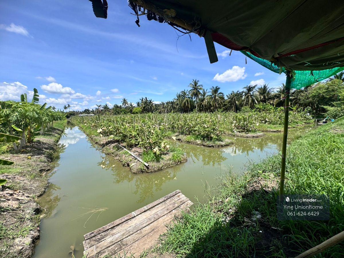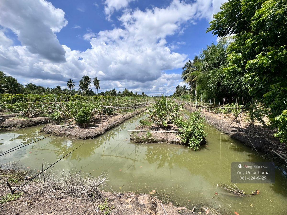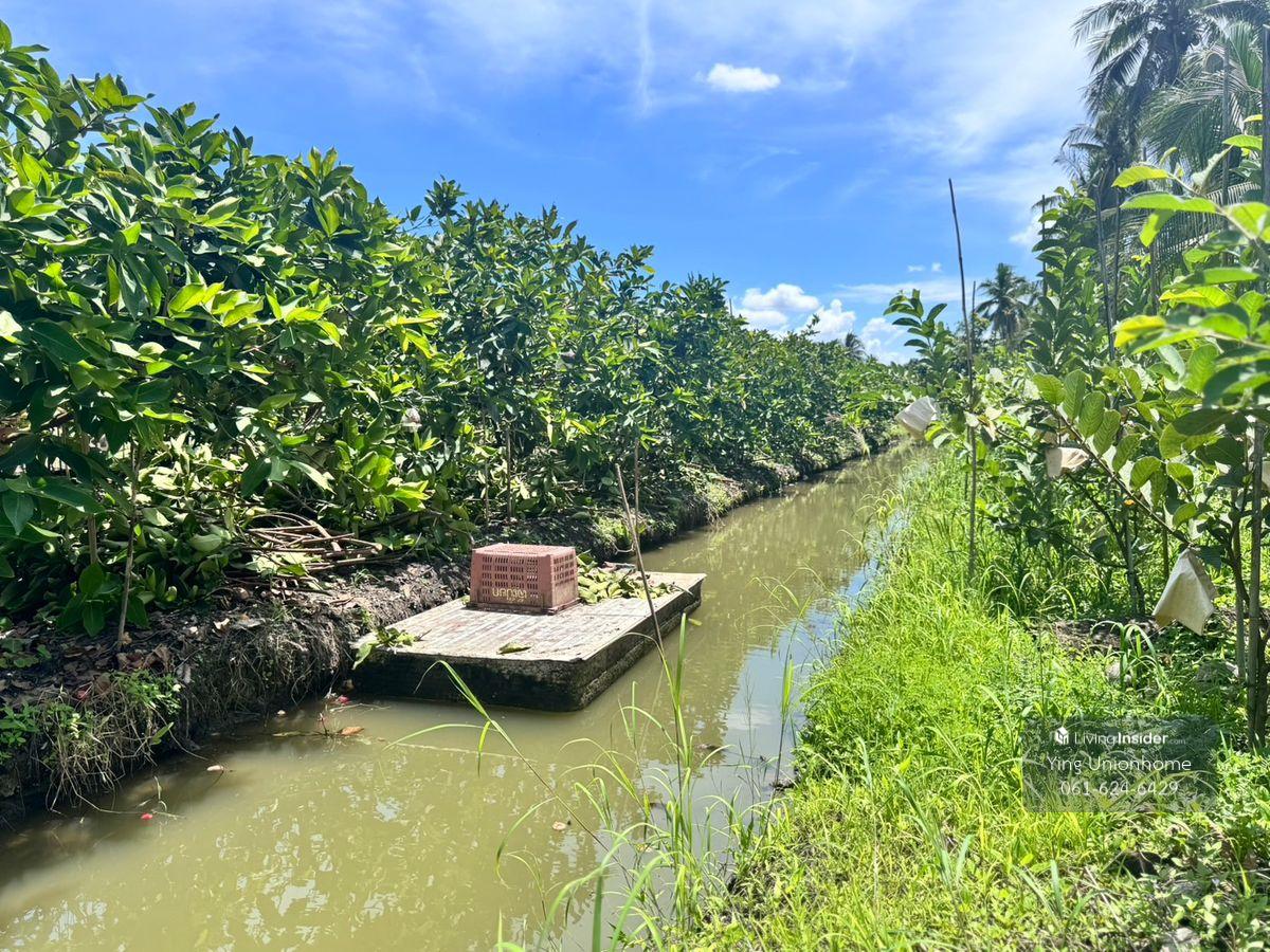Fruit orchard land for sale in Sam Phran District, Khlong Jinda Subdistrict, Nakhon Pathom Province, 25 rai. Price: 3,000 baht/sq wah. Land size: 25 rai, 3 ngan, 60 sq wah. Approximately 95 x 520 meters wide. Rectangular orchard land. Suitable for a homestay, cafe, or continuing gardening. Key Features: Multiple entrances and exits. Water source for the orchard (no history of flooding). The orchard boasts seasonal fruits such as rose apples, guavas, and fragrant coconuts. Near: Wat Sam Phran, Wat Sawang Arom (Luang Pho Pae), Don Wai Floating Market, and Phra Pathom Chedi. Full utilities. Location: Khlong Jinda Subdistrict, Sam Phran District, Nakhon Pathom Province. Contact: Contact number/ Contact number, Khun Chanitwanan. LINE ID: unionhome2566 #unionhome #UnionHome #SamPhranLandForSale #SamPhranOrchardForSale #Land for sale with fruit orchard in Nakhon Pathom #Beautiful, affordable land in Nakhon Pathom #Land for sale near Bangkok, cheap #Land for sale below Sam Phran Market #Land for sale, suitable for investment in Sam Phran #Land for sale near waterfront in Nakhon Pathom #Land for sale near Wat Don Wai #Fruit orchard for sale in Sam Phran Beautiful land for sale, good environment Convenient location with multiple access points Price negotiable For map coordinates or more information, contact us via chat or call.