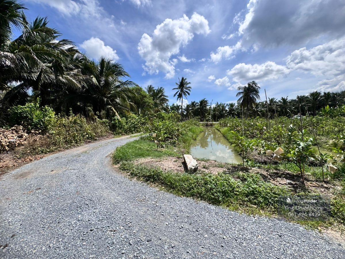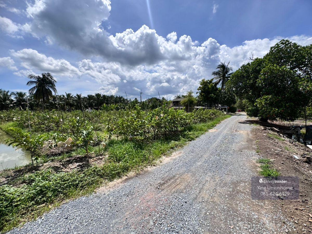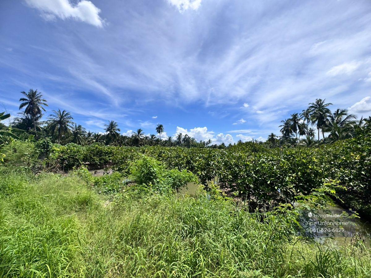 Fruit orchard land for sale in Sam Phran District, Khlong Jinda Subdistrict, Nakhon Pathom Province, 25 rai. Price: 3,000 baht/sq wah. Land size: 25 rai, 3 ngan, 60 sq wah. Approximately 95 x 520 meters wide. Rectangular orchard land. Suitable for a homestay, cafe, or continuing gardening. Key Features: Multiple entrances and exits. Water source for the orchard (no history of flooding). The orchard boasts seasonal fruits such as rose apples, guavas, and fragrant coconuts. Near: Wat Sam Phran, Wat Sawang Arom (Luang Pho Pae), Don Wai Floating Market, and Phra Pathom Chedi. Full utilities. Location: Khlong Jinda Subdistrict, Sam Phran District, Nakhon Pathom Province. Contact: Contact number/ Contact number, Khun Chanitwanan. LINE ID: unionhome2566 #unionhome #UnionHome #SamPhranLandForSale #SamPhranOrchardForSale #Land for sale with fruit orchard in Nakhon Pathom #Beautiful, affordable land in Nakhon Pathom #Land for sale near Bangkok, cheap #Land for sale below Sam Phran Market #Land for sale, suitable for investment in Sam Phran #Land for sale near waterfront in Nakhon Pathom #Land for sale near Wat Don Wai #Fruit orchard for sale in Sam Phran Beautiful land for sale, good environment Convenient location with multiple access points Price negotiable For map coordinates or more information, contact us via chat or call.