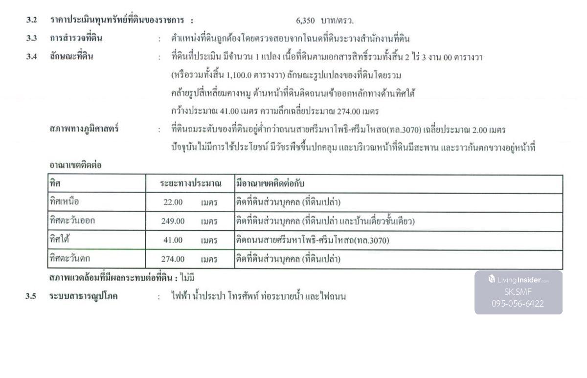 sell!! Vacant land on the Sri Maha Bodhi Road-Sri Mahosot (Tor. 3070), area 1,100 sq.m.