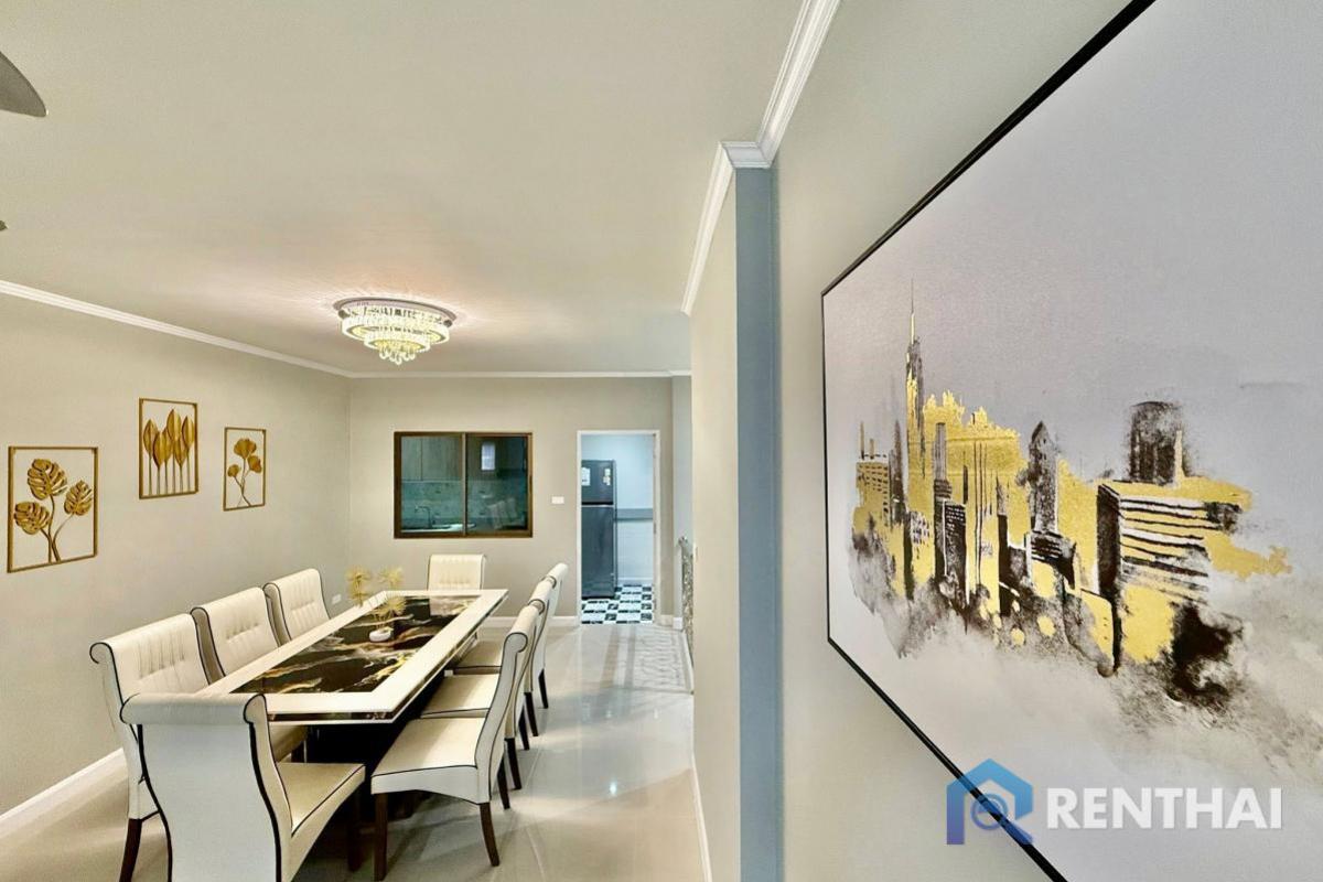 Listing code: #RT03730 Wantana Village. The modern house with fully furnished, located on a well-established village in the Pattaya Suburbs. The village has 24 hour security and is not far from many local markets and convenience stores. Only 15 minute drive to Pattaya Center !!! Sale price: 6,590,000 baht - 4 bedrooms, 2 bathrooms - Land size 75 sq.w. - Usable area 180 sq.m. - 1 floor - Pool view - Company name - Fully furnished Facilities: - Private pool - Pool Access - Washing Machine - Terrace - Air conditioning Location: Nong Prue, Pattaya For more details feel free to contact us by Tel: Contact number WhatsApp: Contact number Line ID: renthai.pattaya3 https://line.me/ti/p/MmOMozF0Ja (click the link to add line) ……………………………………………………………………… Website: https://renthai.com Facebook Page: https://www.facebook.com/renthai.pattaya Line Official: @renthai Email: Contact email Renthai - your reliable assistant in buying, selling and investing in real estate in Pattaya.