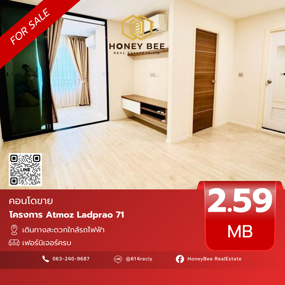 ‼️ Atmoz Ladprao 71, fully furnished, excellent condition, beautiful room 🔥 📍Code BH05 ✨For sale only 2.58 million baht ☀️Details - 38 sq m - 3rd floor, Building D - 2 bedrooms - 1 bathroom 📲 Interested in making an appointment to view the condo 😊 Contact Admin 📞: Contact number 👉🏻 Line link: https://page.line.me/614recly ❇️ Line ID: @614recly 🐝 Honey Bee Real Estate 🍯