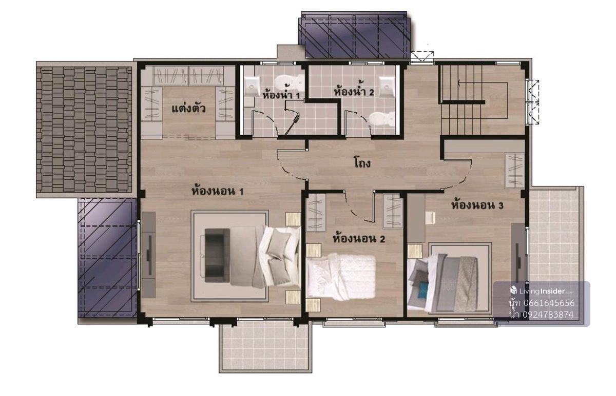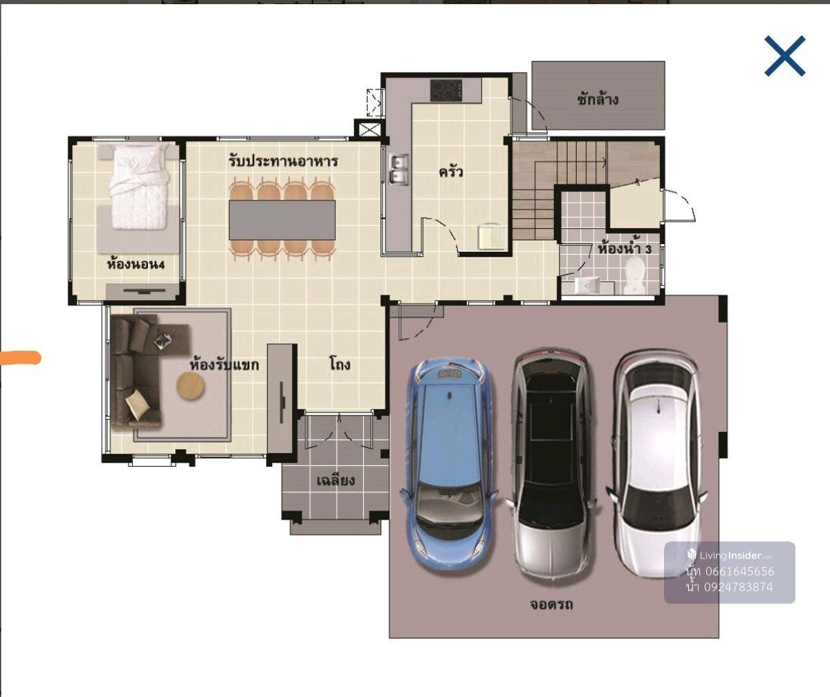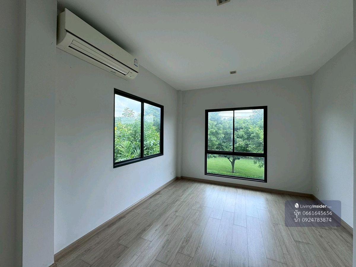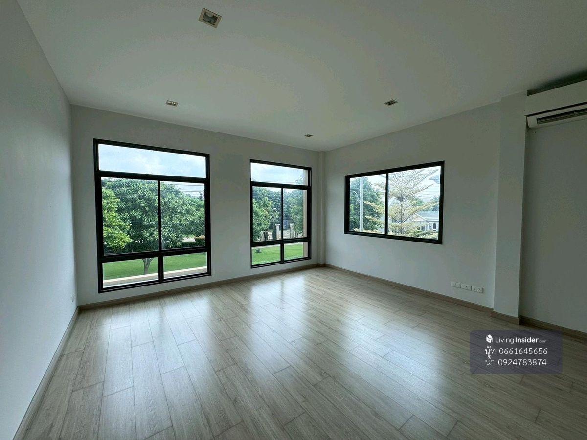 Single house for rent in Laddarom Tiwanon. Land area: 71.5 sq wah, Usable area: 230 sqm. 4 bedrooms, 3 bathrooms, 1 kitchen 3 parking spaces Rent: 50,000 baht/month (fully furnished) Rent: 40,000 baht/month (empty house) - Developer: "Q.House" - 13-meter wide road - Project amenities include a swimming pool, playground/park, and fitness center. - Near Central Chaengwattana, Muang Thong Thani, Robinson Srisaman, and Major Hollywood. - Near Krungthai Hospital and Mongkutwattana Hospital, World Medical Hospital, Krung Siam St. Carlos Hospital - Near Suankularb Wittayalai Nonthaburi School, Nawamintrachinutit Horwang Nonthaburi School, and Phraharuthai Nonthaburi School - Near the Sri Saman Expressway entrance