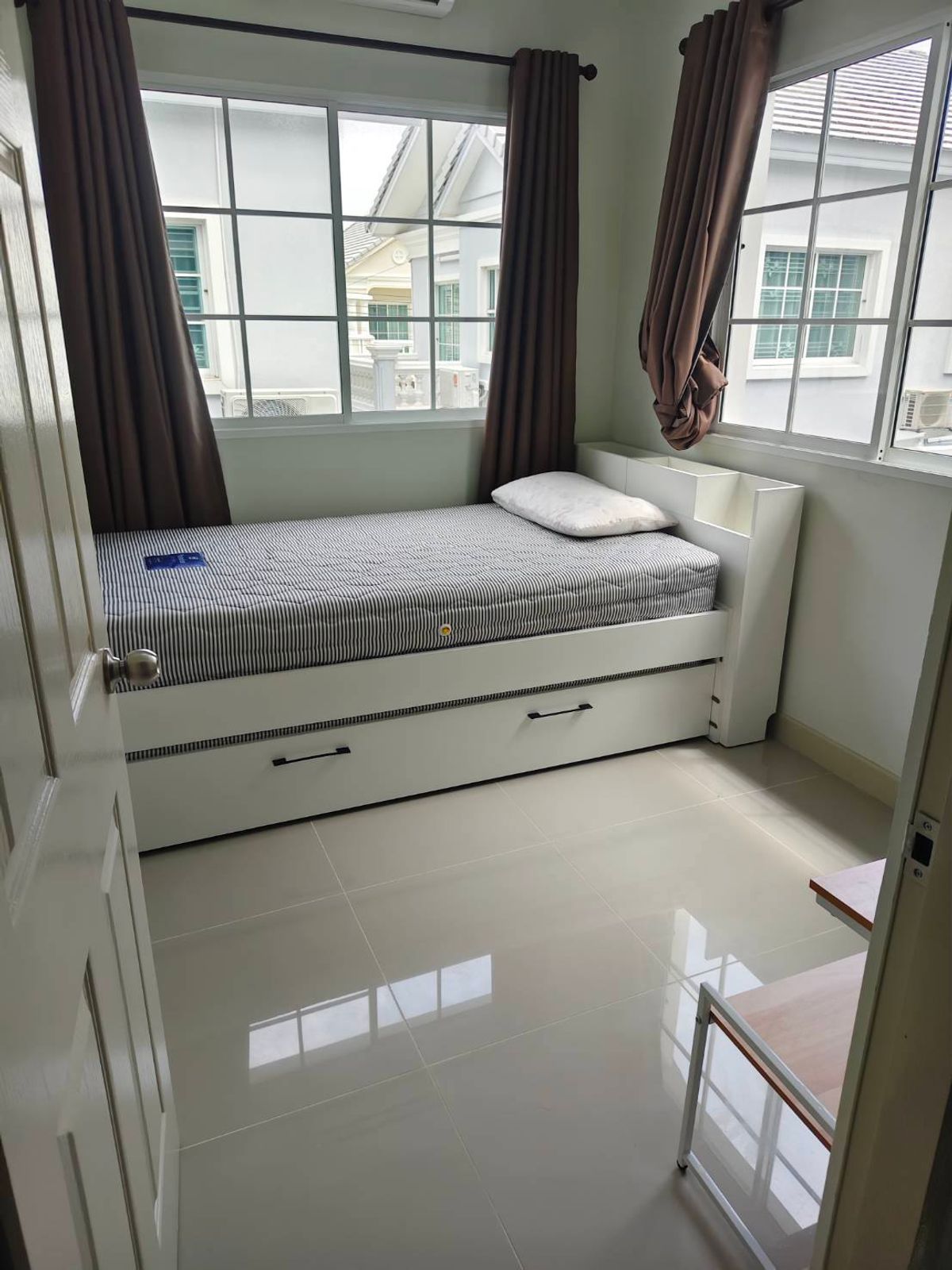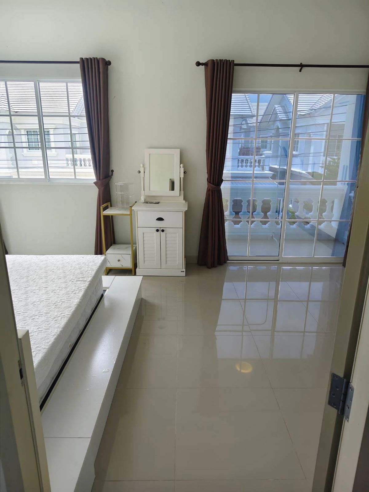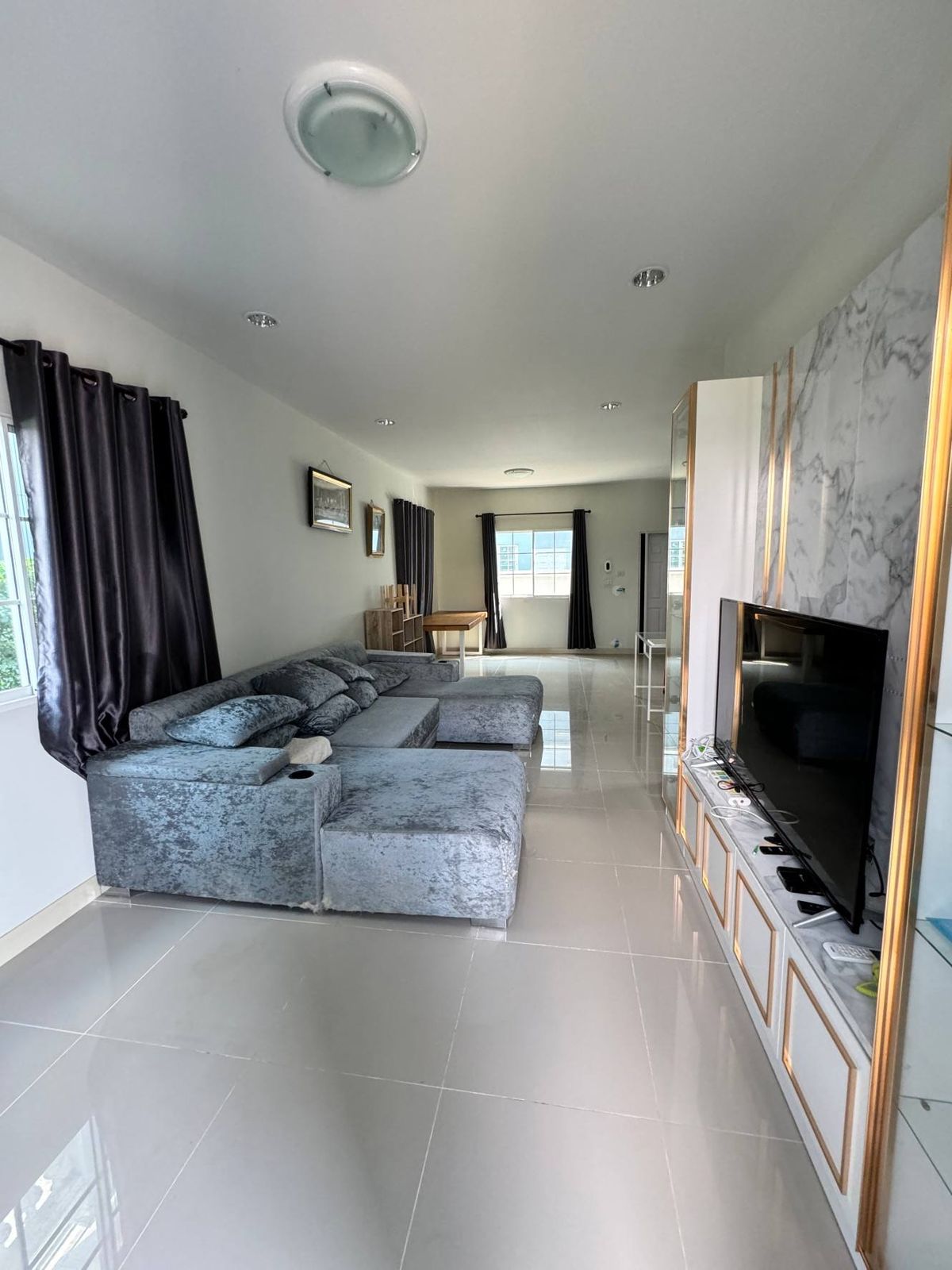 ✅ Rental price 23,000 baht/month (🐶Pet Friendly) 🌈⭐️ House for rent at Nirun Ville 12, The Tree, Huachiew Chalermprakiet University. Ready to move in. Pets welcome. Company registration available. Located in Soi Wat Siwarinoy. 👉 Usable area 122 sq m. 👉 3 bedrooms 🛁 2 bathrooms 👉 1 living room 🍽️ 1 kitchen 🚙 2 parking spaces, 1 small multipurpose room 👍 Fully furnished and equipped ⭐️ 1-year lease. Maintenance included for the duration of the lease. ⭐️ 1 month advance payment + 2 months security deposit. 😊 Welcome co-agents. ♥️ Interested Contact Khun Meen (Agent) ☎️ Tel. Contact number Line Official: @spaceman888 WeChat ID: spaceman8889 3 bedrooms, upstairs, all with air conditioning and beds. The small room has a bed with drawers. The master bedroom is very large and has a built-in closet. 1 bathroom upstairs with a water heater. The master bedroom has two balconies. - Downstairs: 55-inch Smart TV Sofa Large, high-quality wooden dining table Built-in kitchen Microwave Electric stove 1 air conditioner Curtains throughout the house *No refrigerator 1 bathroom 1 small multipurpose room #House for rent in Soi Wat Warin Noi #House for rent in Bangna-Trad #House for rent near Hua Chiew #House for rent with company registration
