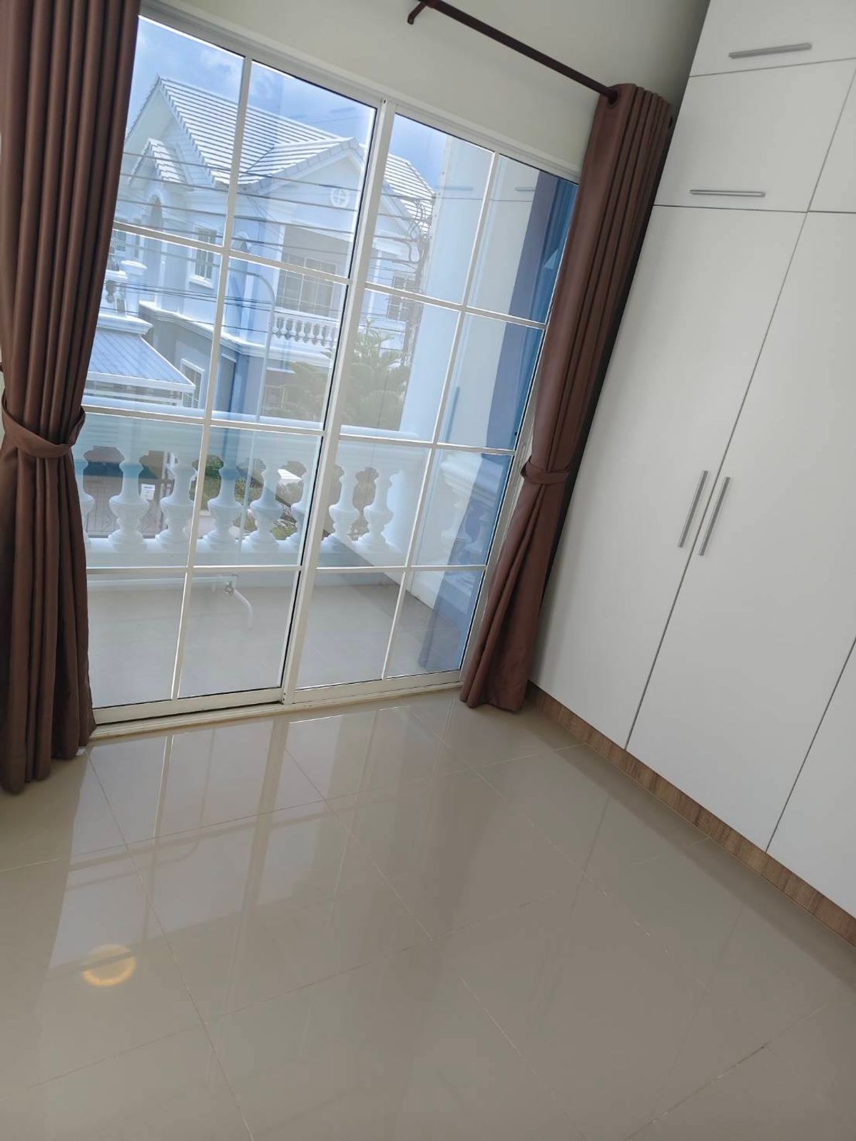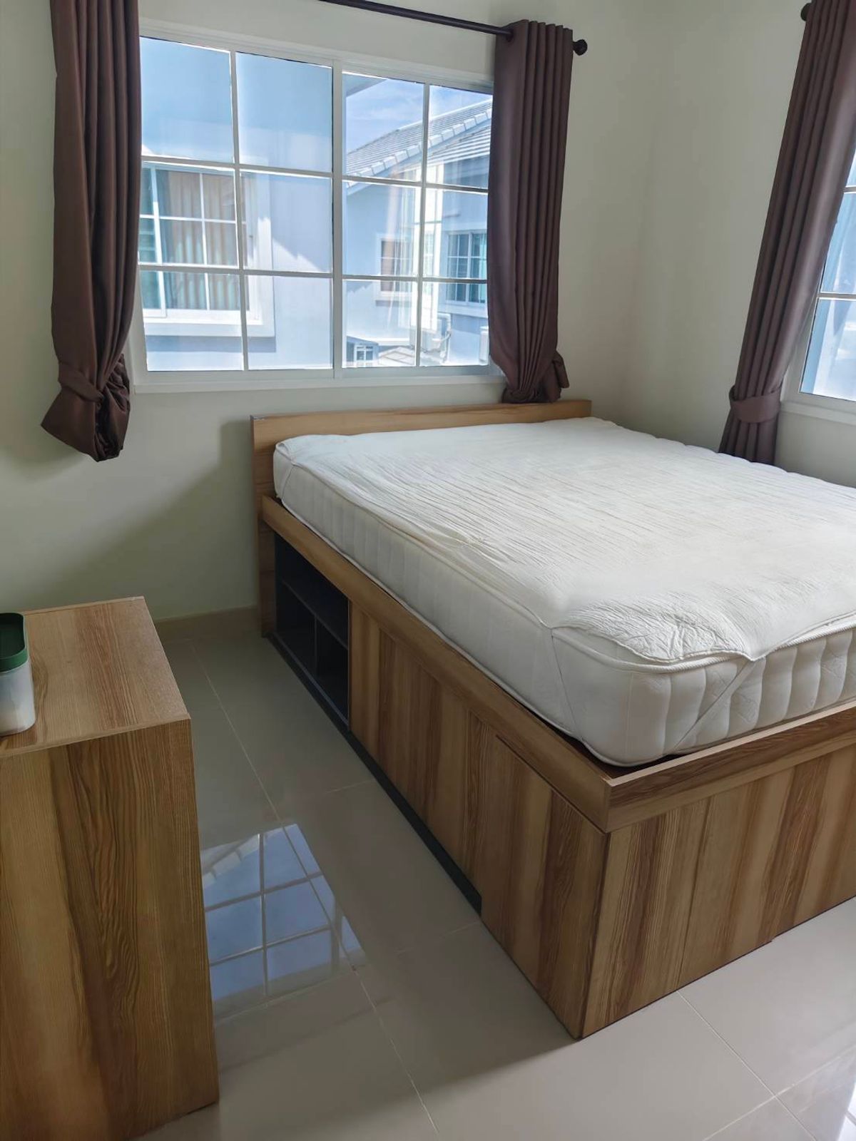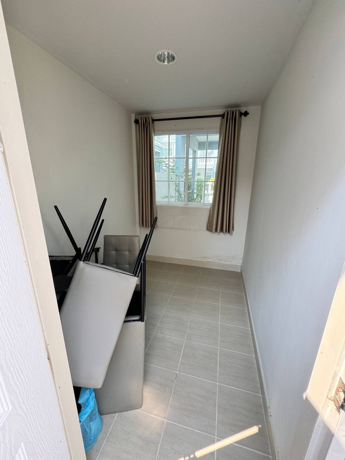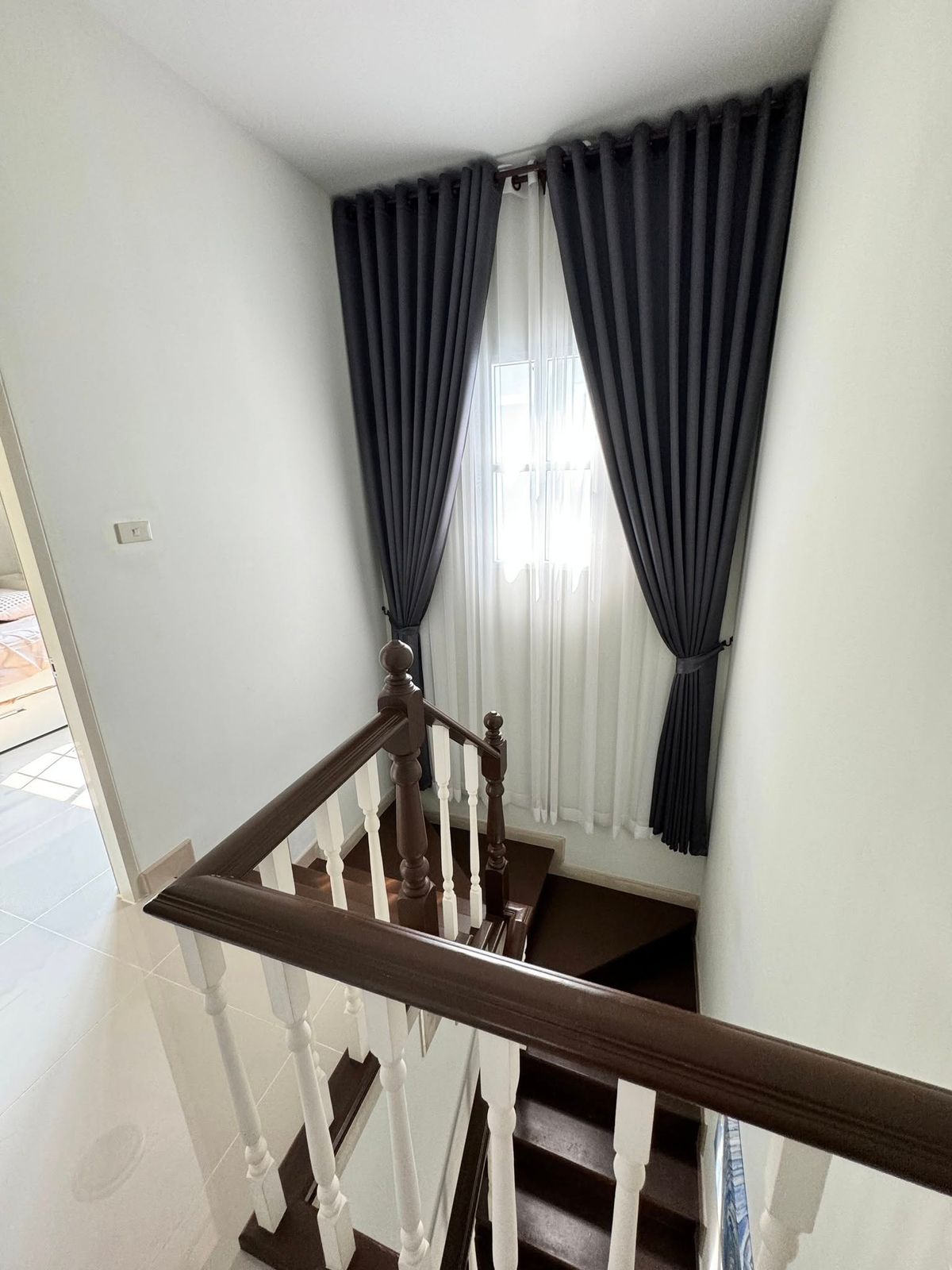 ✅ Rental price 23,000 baht/month (🐶Pet Friendly) 🌈⭐️ House for rent at Nirun Ville 12, The Tree, Huachiew Chalermprakiet University. Ready to move in. Pets welcome. Company registration available. Located in Soi Wat Siwarinoy. 👉 Usable area 122 sq m. 👉 3 bedrooms 🛁 2 bathrooms 👉 1 living room 🍽️ 1 kitchen 🚙 2 parking spaces, 1 small multipurpose room 👍 Fully furnished and equipped ⭐️ 1-year lease. Maintenance included for the duration of the lease. ⭐️ 1 month advance payment + 2 months security deposit. 😊 Welcome co-agents. ♥️ Interested Contact Khun Meen (Agent) ☎️ Tel. Contact number Line Official: @spaceman888 WeChat ID: spaceman8889 3 bedrooms, upstairs, all with air conditioning and beds. The small room has a bed with drawers. The master bedroom is very large and has a built-in closet. 1 bathroom upstairs with a water heater. The master bedroom has two balconies. - Downstairs: 55-inch Smart TV Sofa Large, high-quality wooden dining table Built-in kitchen Microwave Electric stove 1 air conditioner Curtains throughout the house *No refrigerator 1 bathroom 1 small multipurpose room #House for rent in Soi Wat Warin Noi #House for rent in Bangna-Trad #House for rent near Hua Chiew #House for rent with company registration