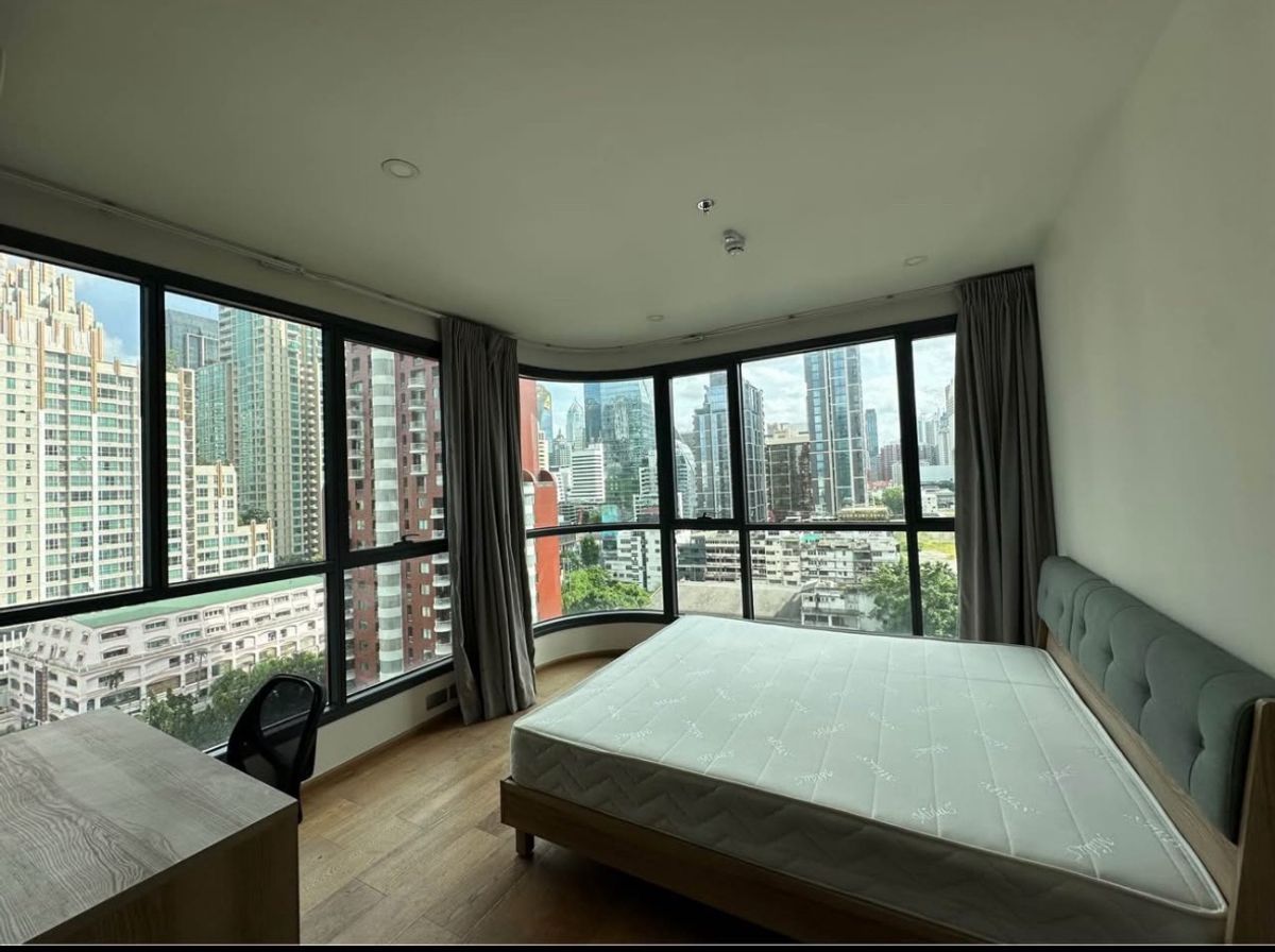 Rent Q Chidlom Room 2 bedrooms, 2 bathrooms, floor 10+ Beautiful view Size 63 sqm. The room is very beautiful. Ready to move in Complete furniture Complete electrical appliances -TV -Refrigerator -Mic