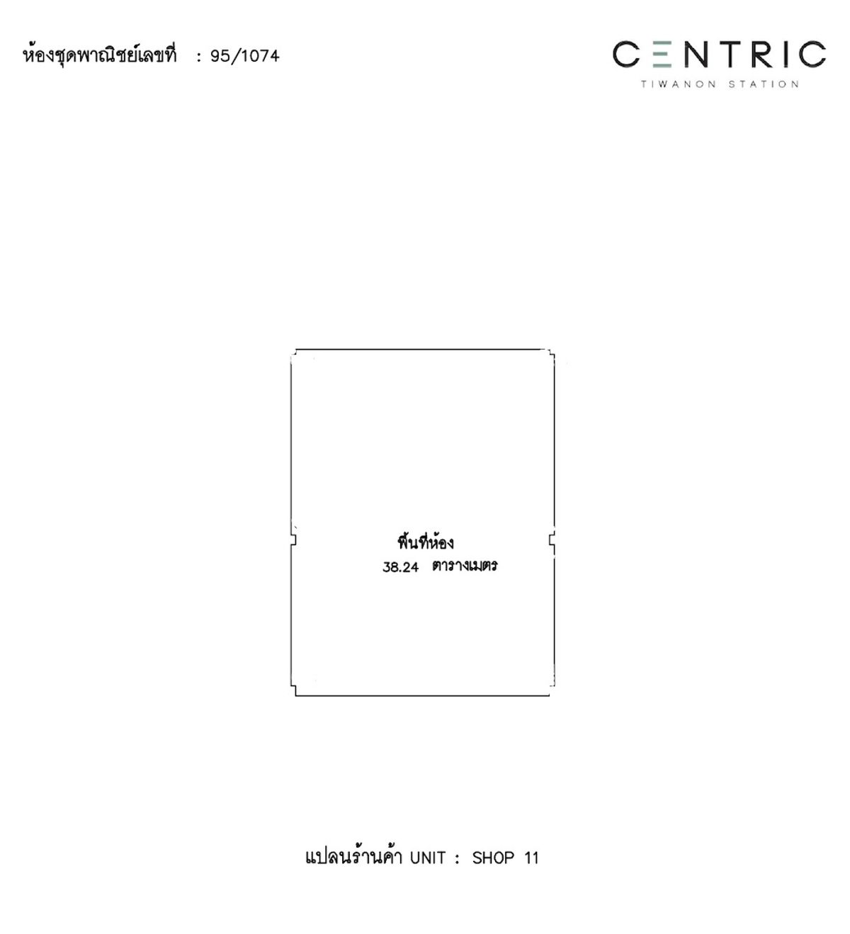 (Owner sells by themselves) Selling a shop under the condo or can be used to make office Size 38.24 sqm. The ceiling is 3.3 meters high at the Centric. The Tiwanon Station is a large project. There ar
