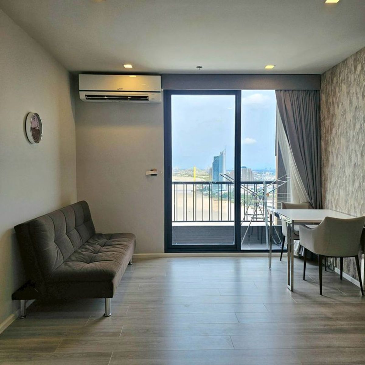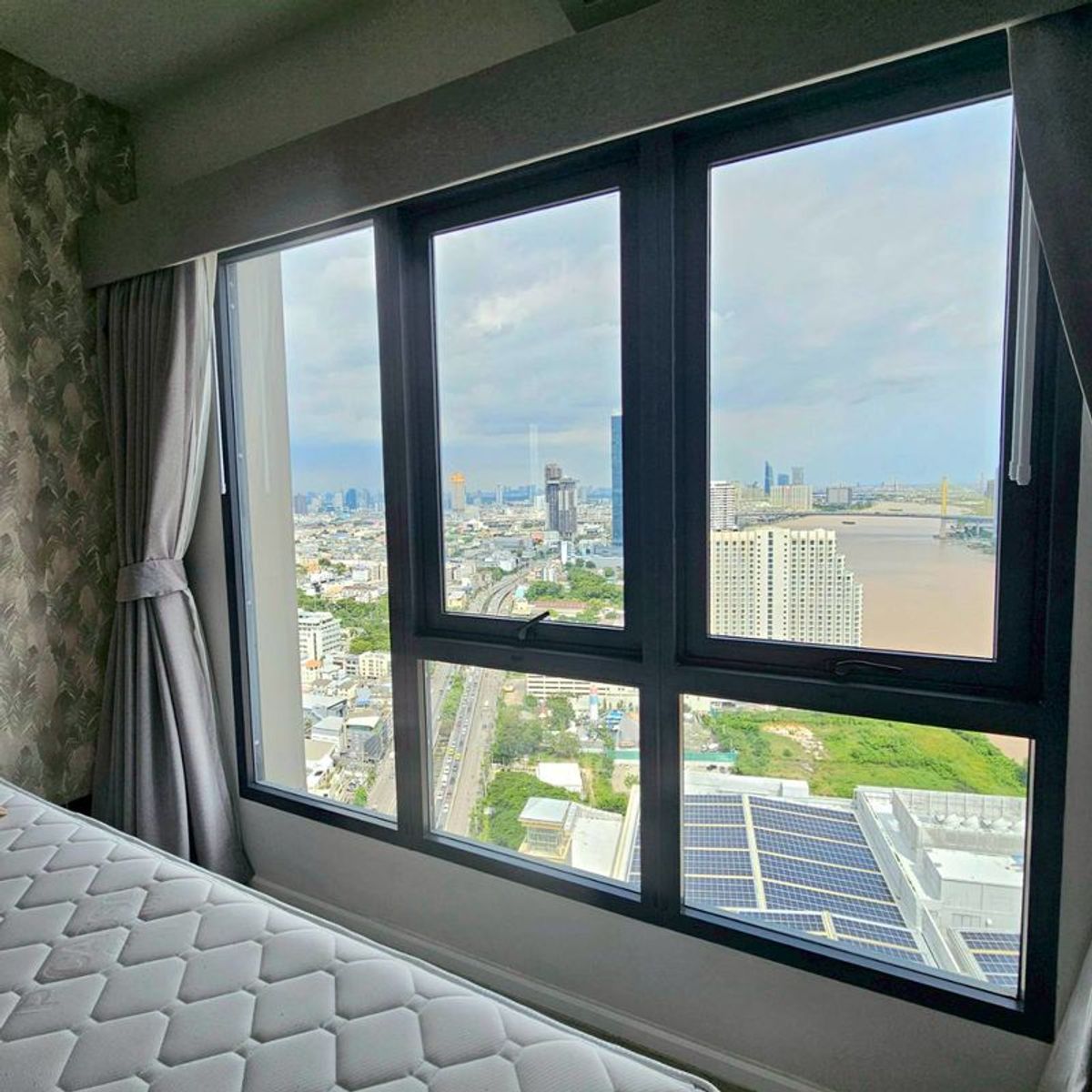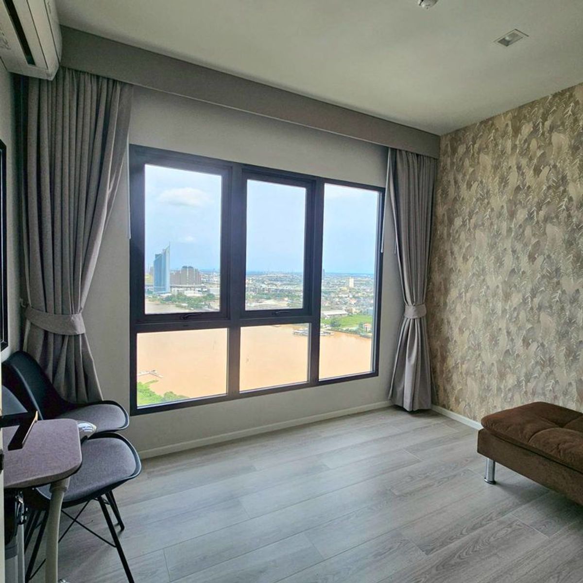 Corner Unit with Panoramic River View | Top Floor . For Rent — The Key Rama 3, next to Terminal 21 Rama 3. Rare Corner Unit on the Top Floor (37th) — only 4 units on the entire floor. . 🛏 2 Bedrooms | 55 sq.m. | Fully Furnished ✨ Highlights: • Stunning panoramic Chao Phraya River View from bedroom & living room • Elegant layout, airy & bright • Prime lifestyle location with direct access to Terminal 21 Rama 3 . 💵 Rental Price: 35,000 THB / month 📞 Contact: Line/Call Contact number