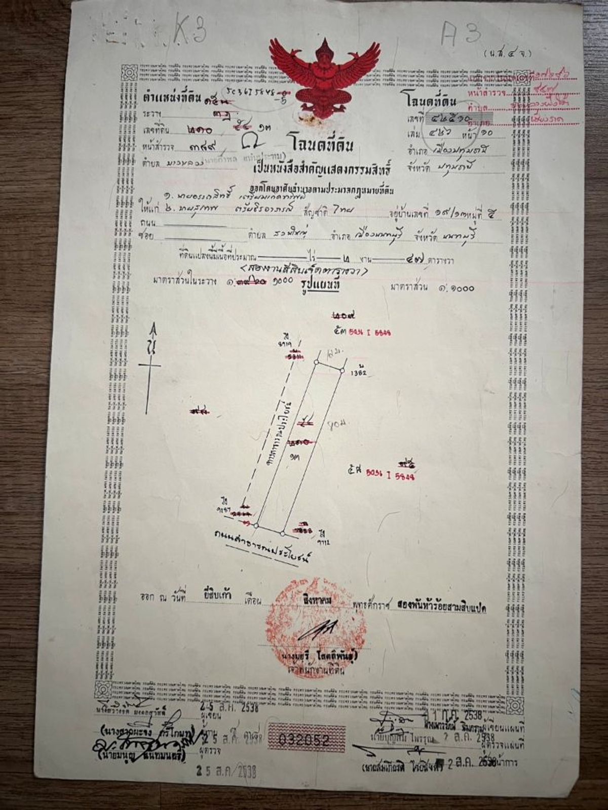 Property Code: PA Contact number Land for sale, 247 sq.w., next to the concrete road Liab Khlong Bang Pho Tai Road The mouth of the pomegranate, 2, Village No. 7, Pathum Thani Location: Bang Luang Subdistrict, Mueang Pathum Thani District, Pathum Thani 12000 Coordinates: https://mapP.PP.GO.GL/QSBNZBHALUZ3UD98 Size: 247 sq.w. (? 800 meters away from Kanchanaphisek - Land with title deeds - Electrical system + Water access - Suitable for residence, factory, shop, restaurant - Good location near the community - Lotus Pathum Thani Wat Nanthawan Panyaram Selling price: 4,446,000 baht (18,000 baht/sq.) Interested contact Khun Chai: Contact number ID: chaai7711