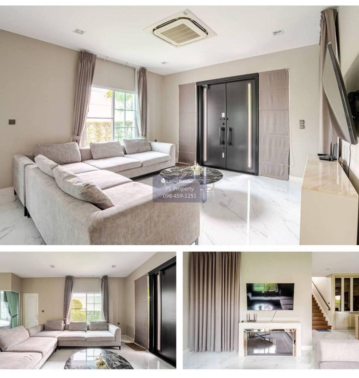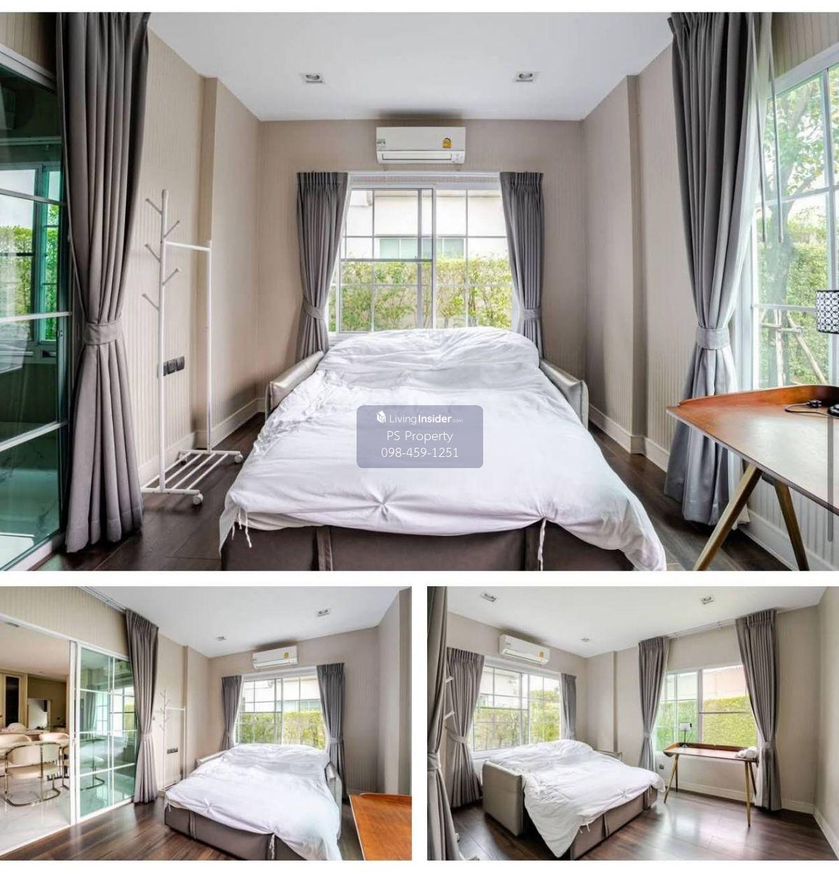 Price: 200,000 baht / month Usable area: 1295 sq.m. Area: 108 sq.w. Floor: 2 4 bedrooms / 4 bathrooms / 1 living room / 3 parking spaces Amenities: CCTV, key card Access, fitness center, swimming pool, 24/7 security guard, co-working area, common area. Furniture included: TV, microwave, sofa, refrigerator, bed, air conditioner, water heater, Smoke Dispenser, shelf, TV cabinet, wardrobe, center table. House for rent! convenient transportation, near BTS, near the expressway, fully furnished Ready for viewing. Interested please contact: 📞Call center: Contact number 📱Hotline: Contact number 📲Whatsapp: Contact number 🖱️Line: @psproperty https://lin.ee/d8bpOBs Website: https://www.ps-property.co.th/
