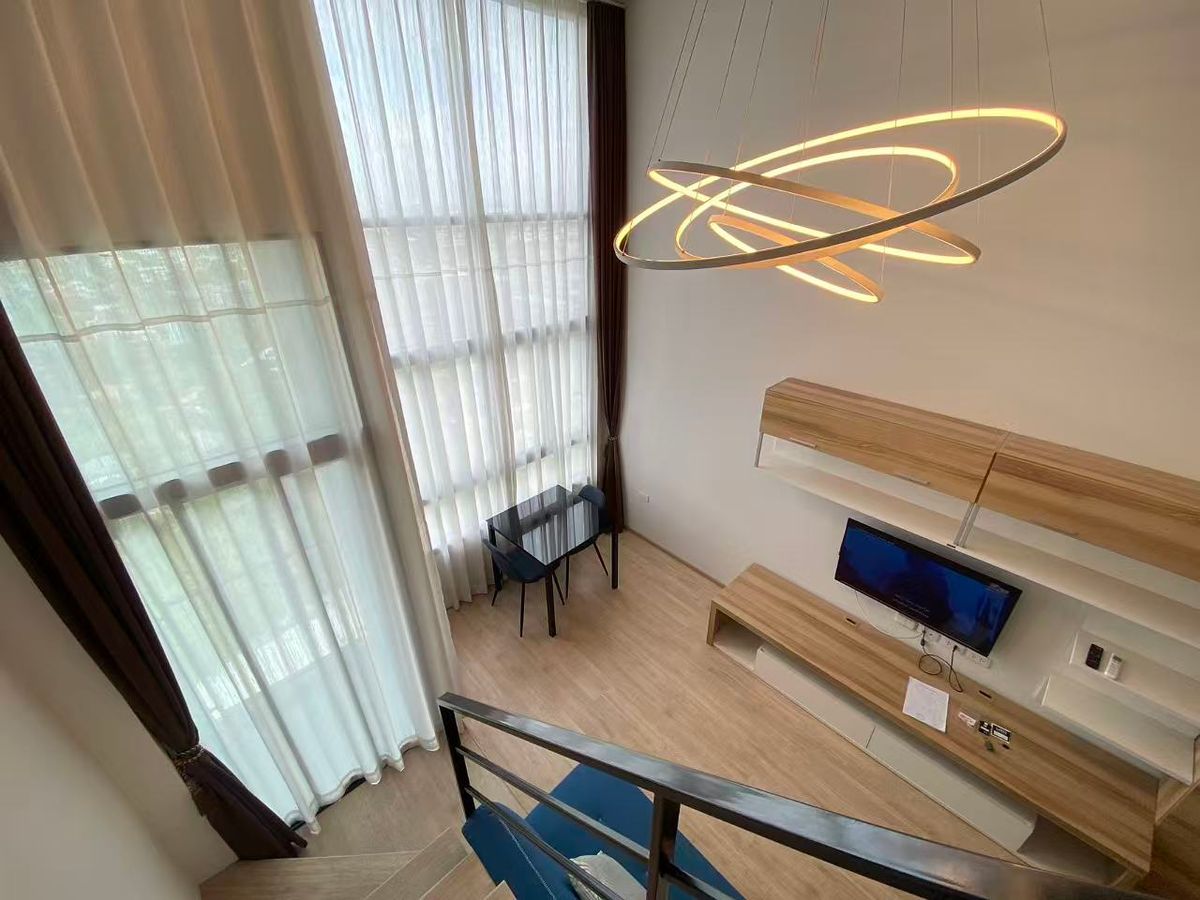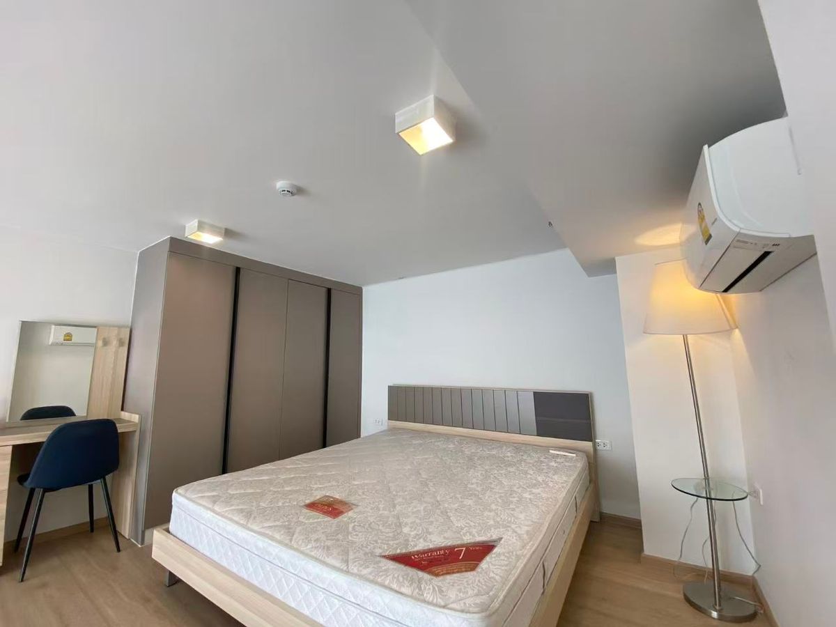 🚩 A114 for rent (IDEO NEW RAMA9) The 22nd floor, 27 sqm. Type: Duplex 1 bathroom 💸 Rental price 18,000 baht/month 💸 (2 months in advance 1 month) Microwave - TV 1 machine - 5-foot bed - Desk - Chair -