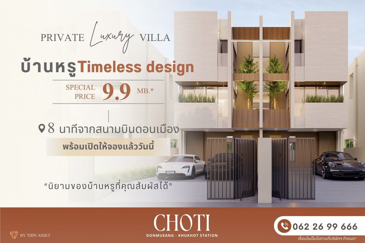 Open for booking New project! Choti Don Mueang - Khu Kot Station The house that reflects its success, design, Timeless Modern Luxury, luxurious, beautiful, beautiful, beautiful 🌳 The ultimate location near Don Mueang Airport, BTS Coo and the Don Mueang (? Unit without a central value ✅️ Double Volume 6.5 meters ✅️Flexible Space, Office, Shophouse Sensation " 🍌 Open to visit the project today 🍌 📌 Contact the project sales department: Press to show LINE press to perform Press to perform Map: Press to show *Conditions as specified by the company #Choti #thinasset