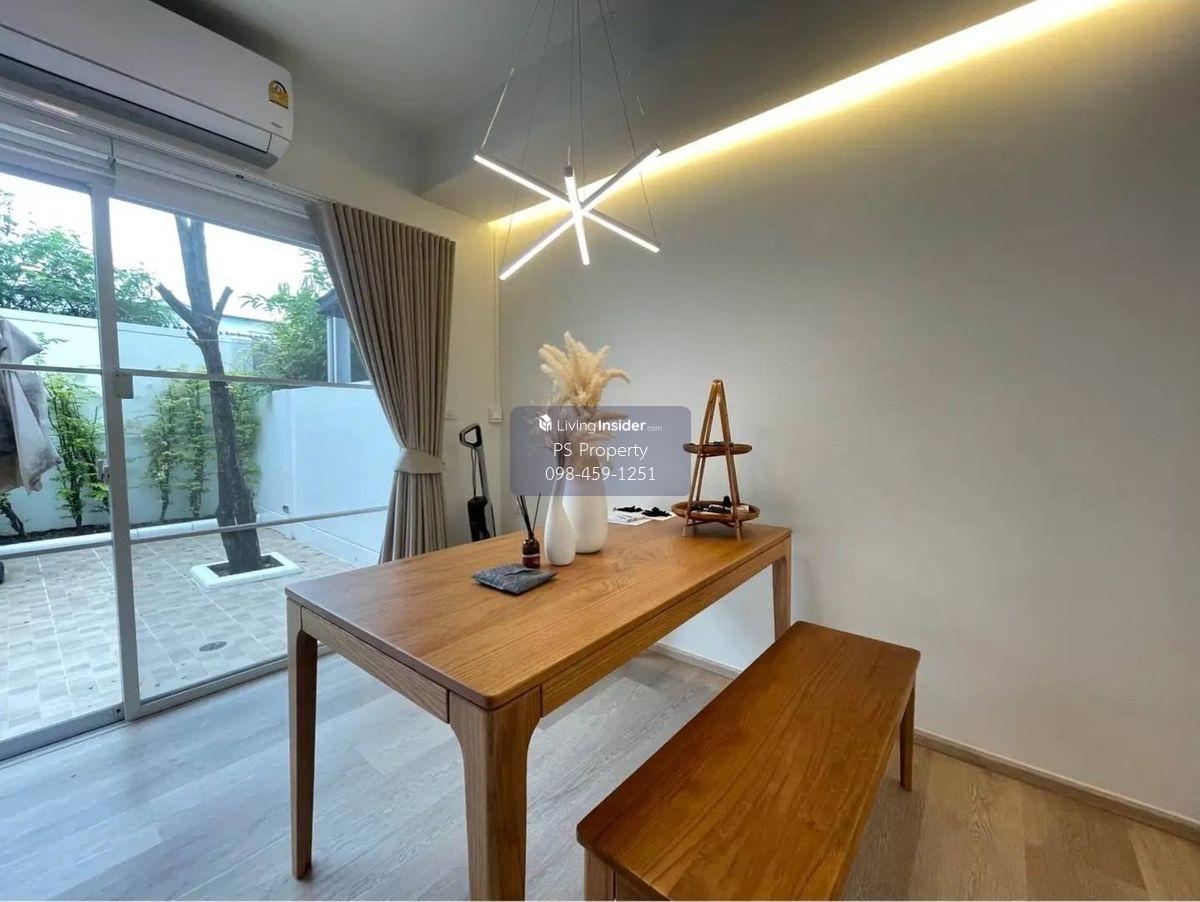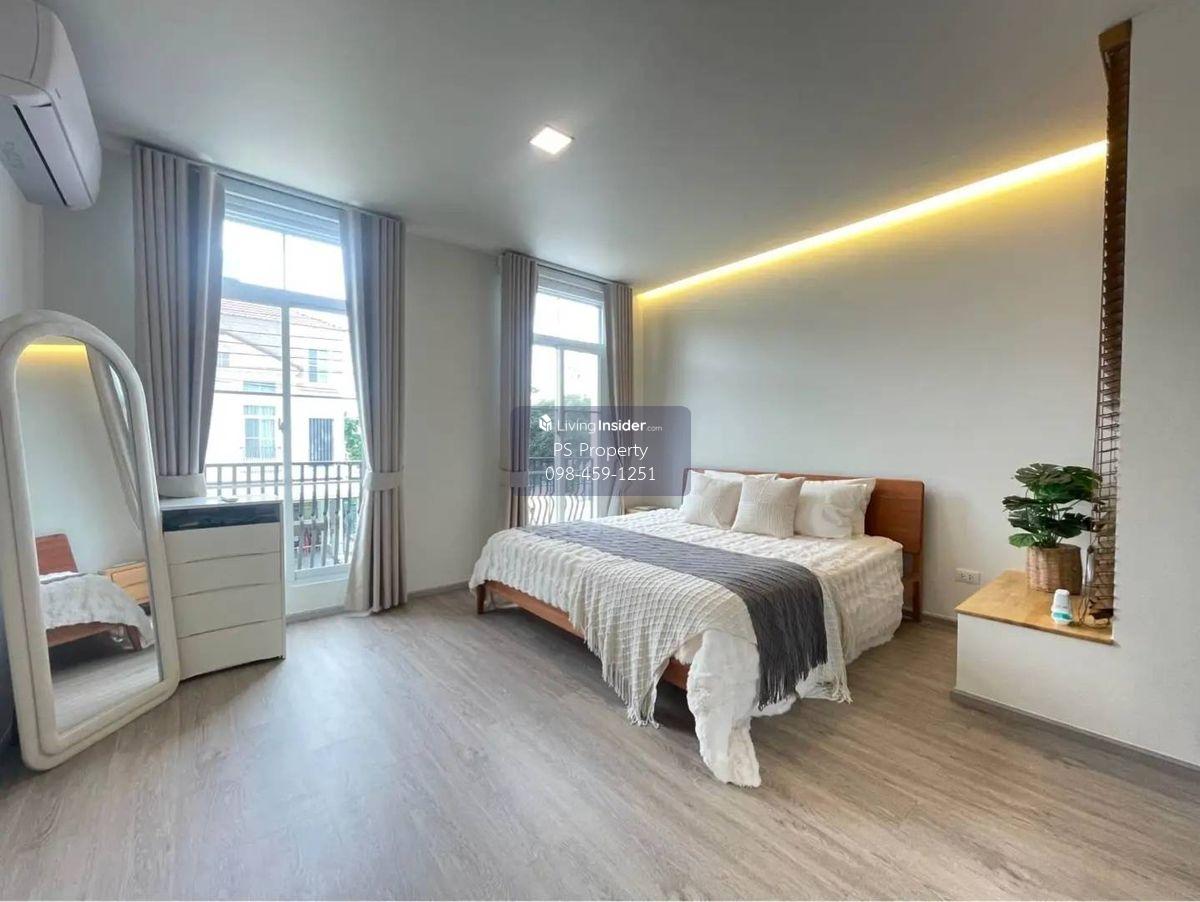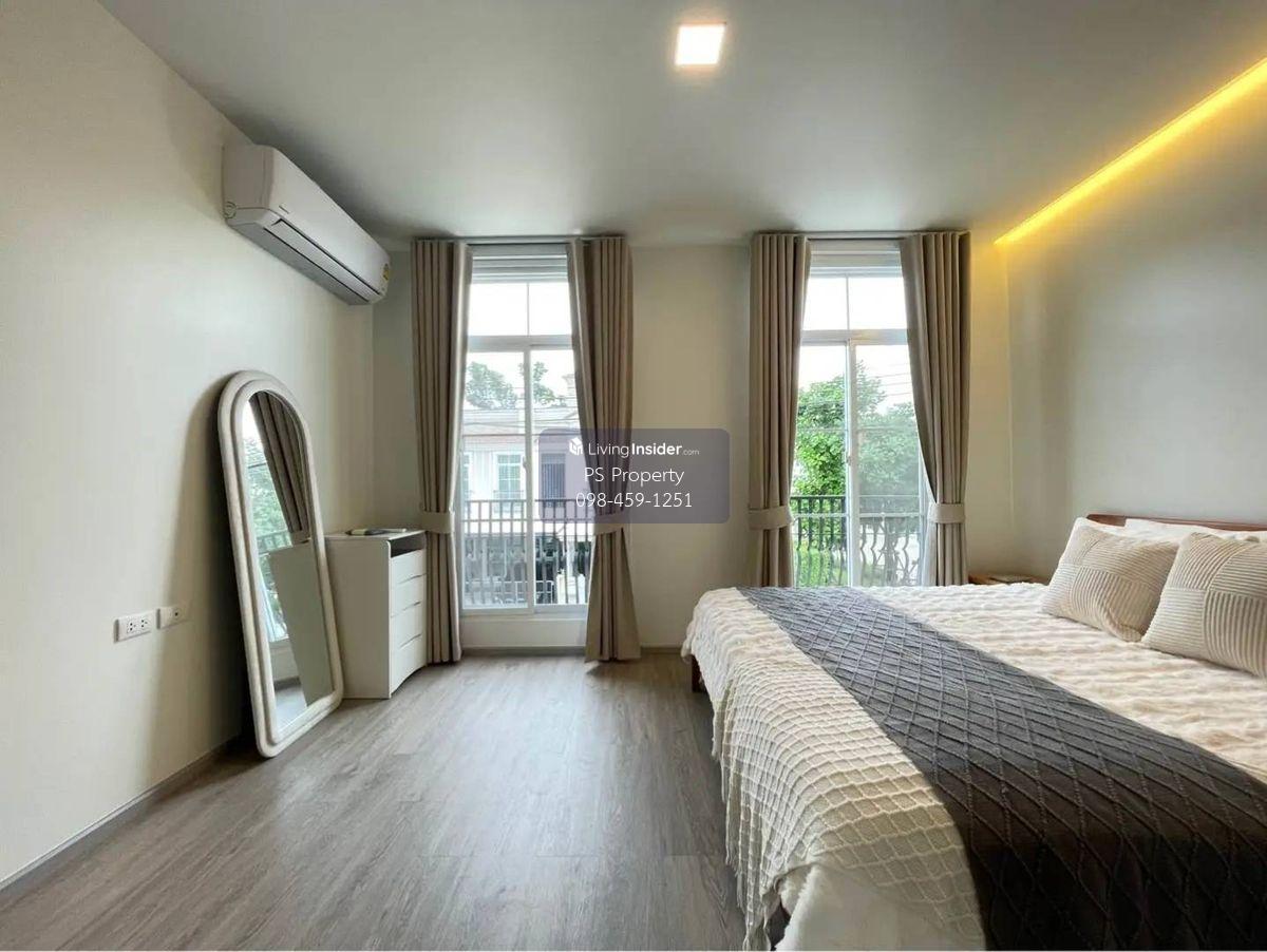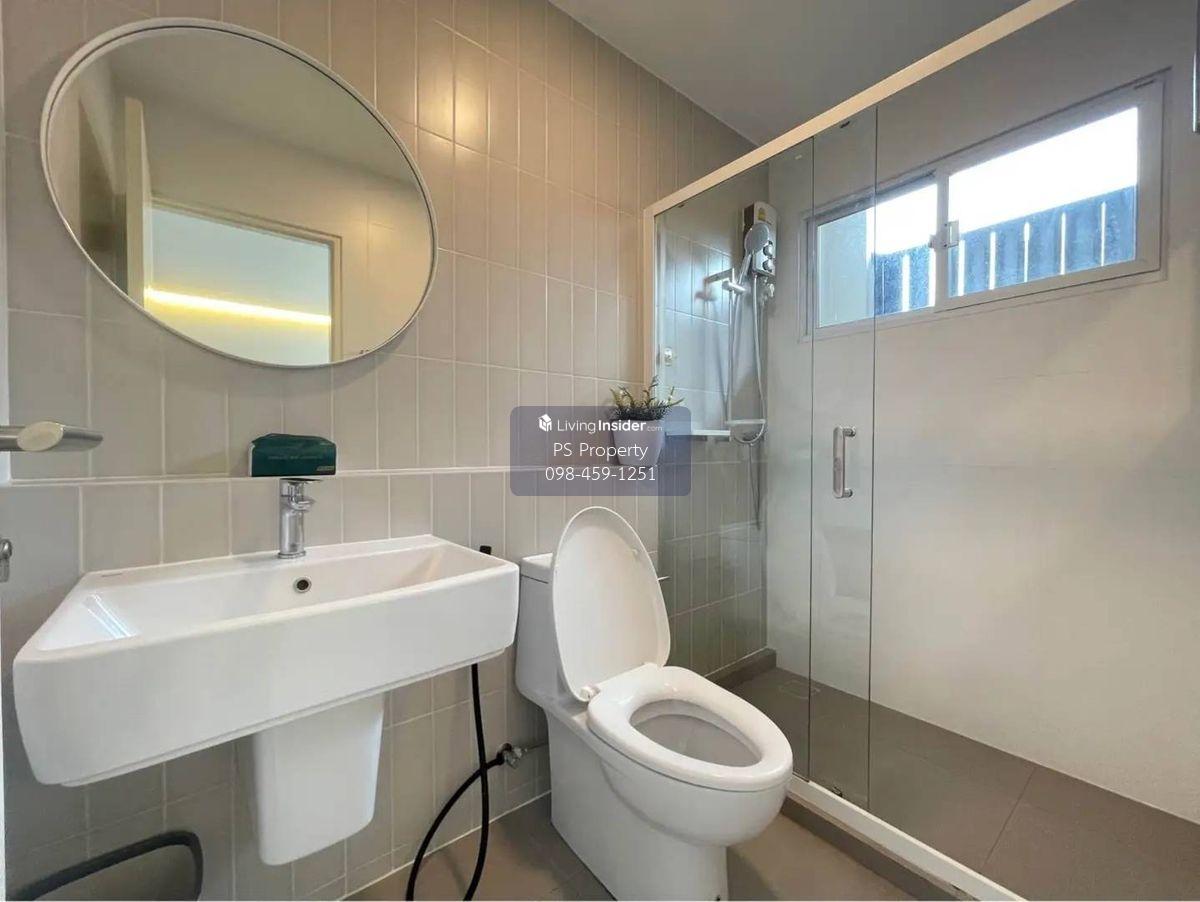 Price: 65,000 baht / month Usable area: 122 sq.m. Area: 28 sq.w. Floor: 2 3 bedrooms / 3 bathrooms / 1 living room / 2 parking spaces Amenities: CCTV, key card Access, fitness center, swimming pool, 24/7 security guard, co-working area, common area. Furniture included: TV, microwave, sofa, refrigerator, bed, air conditioner, water heater, Smoke Dispenser, shelf, TV cabinet, wardrobe, center table. House for rent! convenient transportation, near BTS, near the expressway, fully furnished Ready for viewing. Interested please contact: 📞Call center: Contact number 📱Hotline: Contact number 📲Whatsapp: Contact number 🖱️Line: @psproperty https://lin.ee/d8bpOBs Website: https://www.ps-property.co.th/