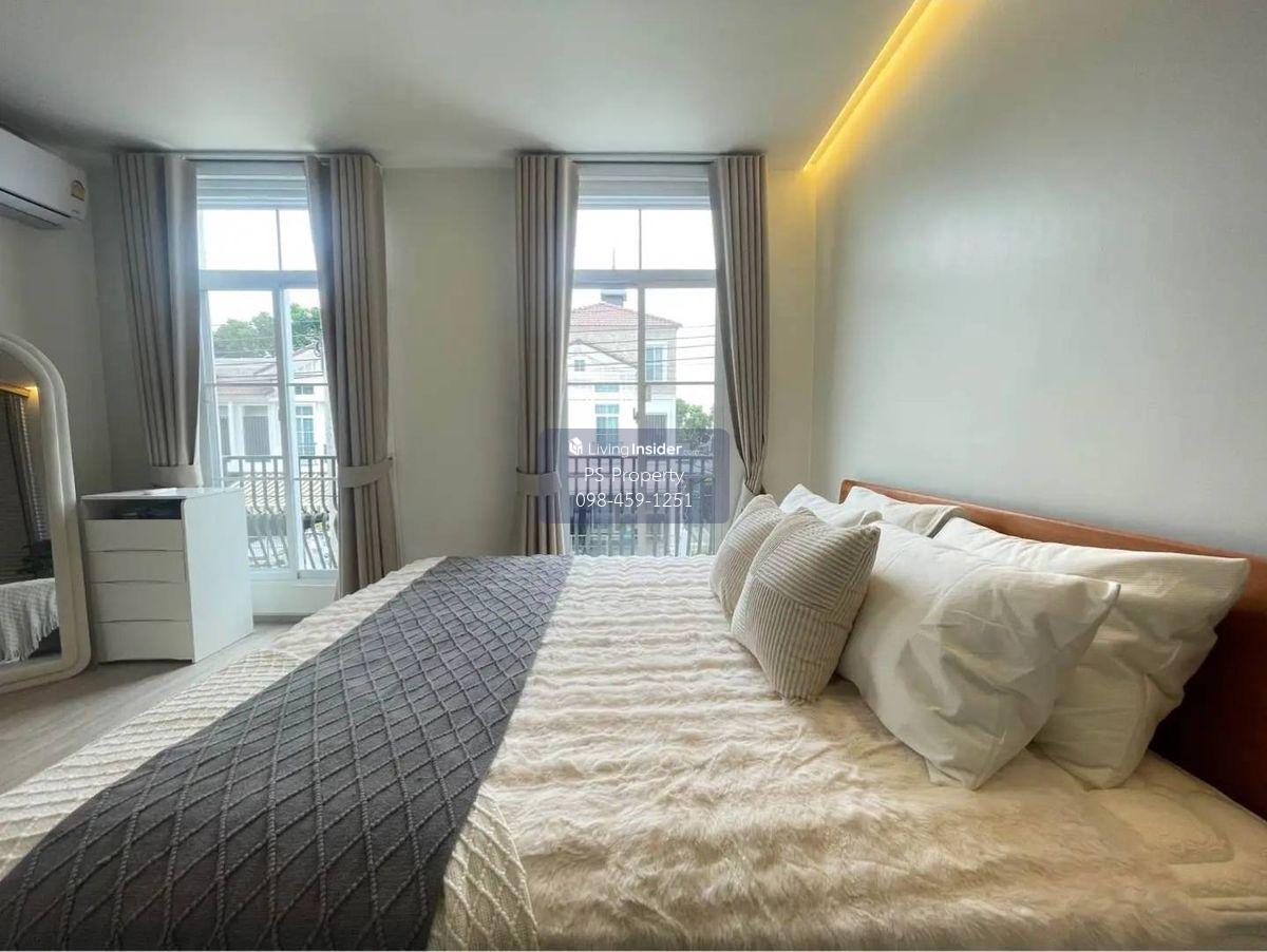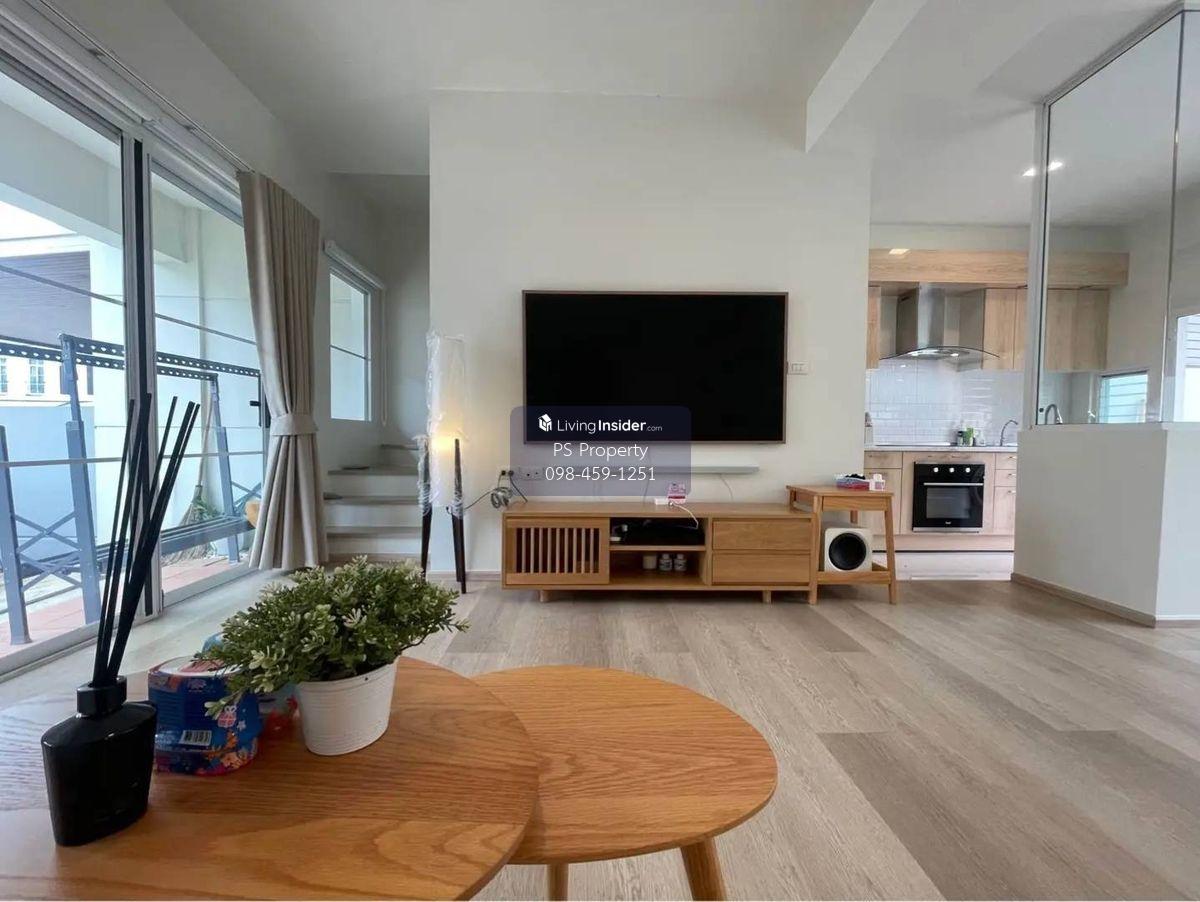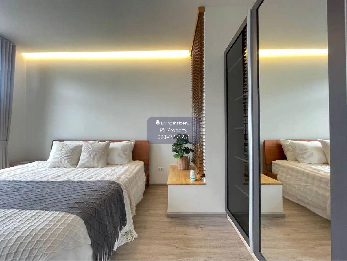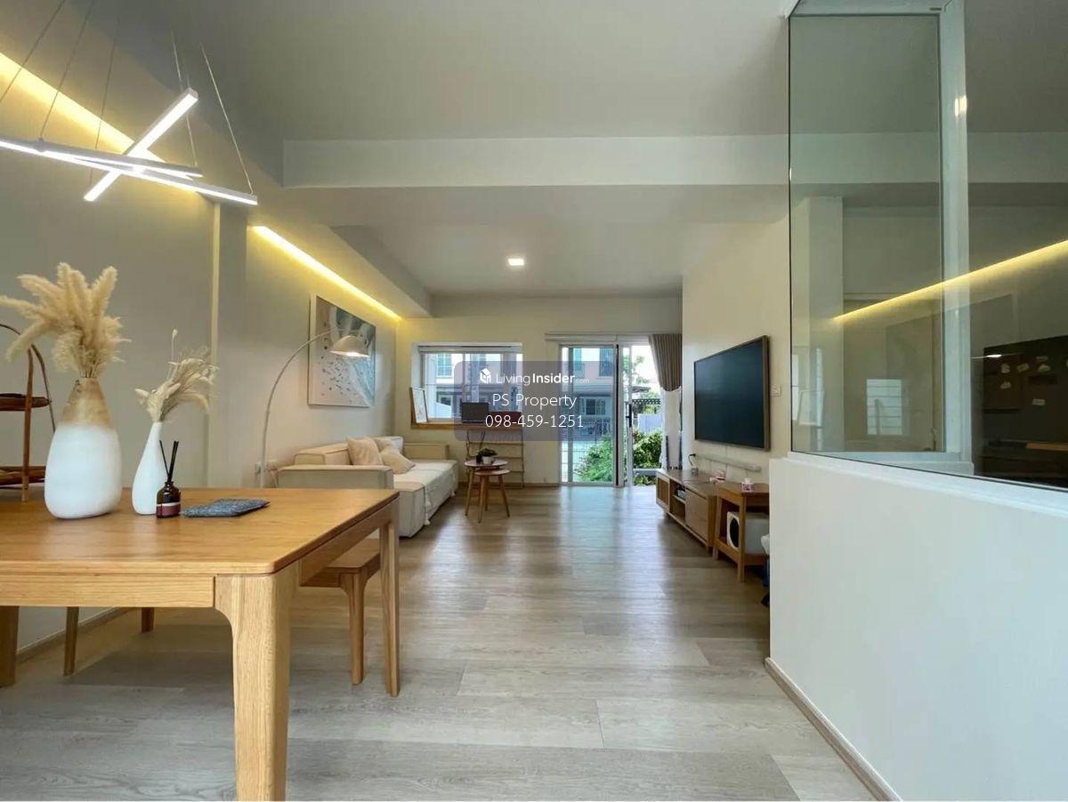 Price: 65,000 baht / month Usable area: 122 sq.m. Area: 28 sq.w. Floor: 2 3 bedrooms / 3 bathrooms / 1 living room / 2 parking spaces Amenities: CCTV, key card Access, fitness center, swimming pool, 24/7 security guard, co-working area, common area. Furniture included: TV, microwave, sofa, refrigerator, bed, air conditioner, water heater, Smoke Dispenser, shelf, TV cabinet, wardrobe, center table. House for rent! convenient transportation, near BTS, near the expressway, fully furnished Ready for viewing. Interested please contact: 📞Call center: Contact number 📱Hotline: Contact number 📲Whatsapp: Contact number 🖱️Line: @psproperty https://lin.ee/d8bpOBs Website: https://www.ps-property.co.th/