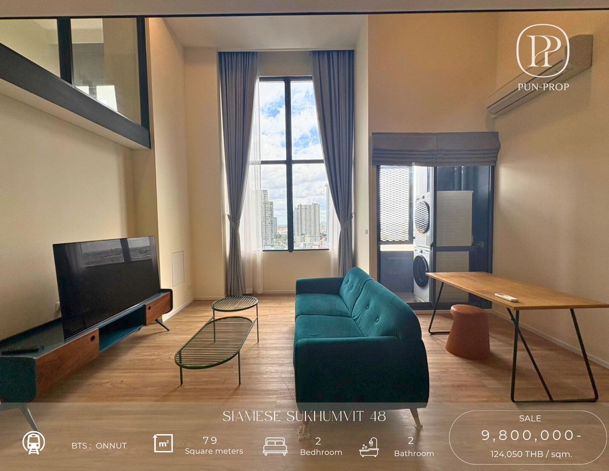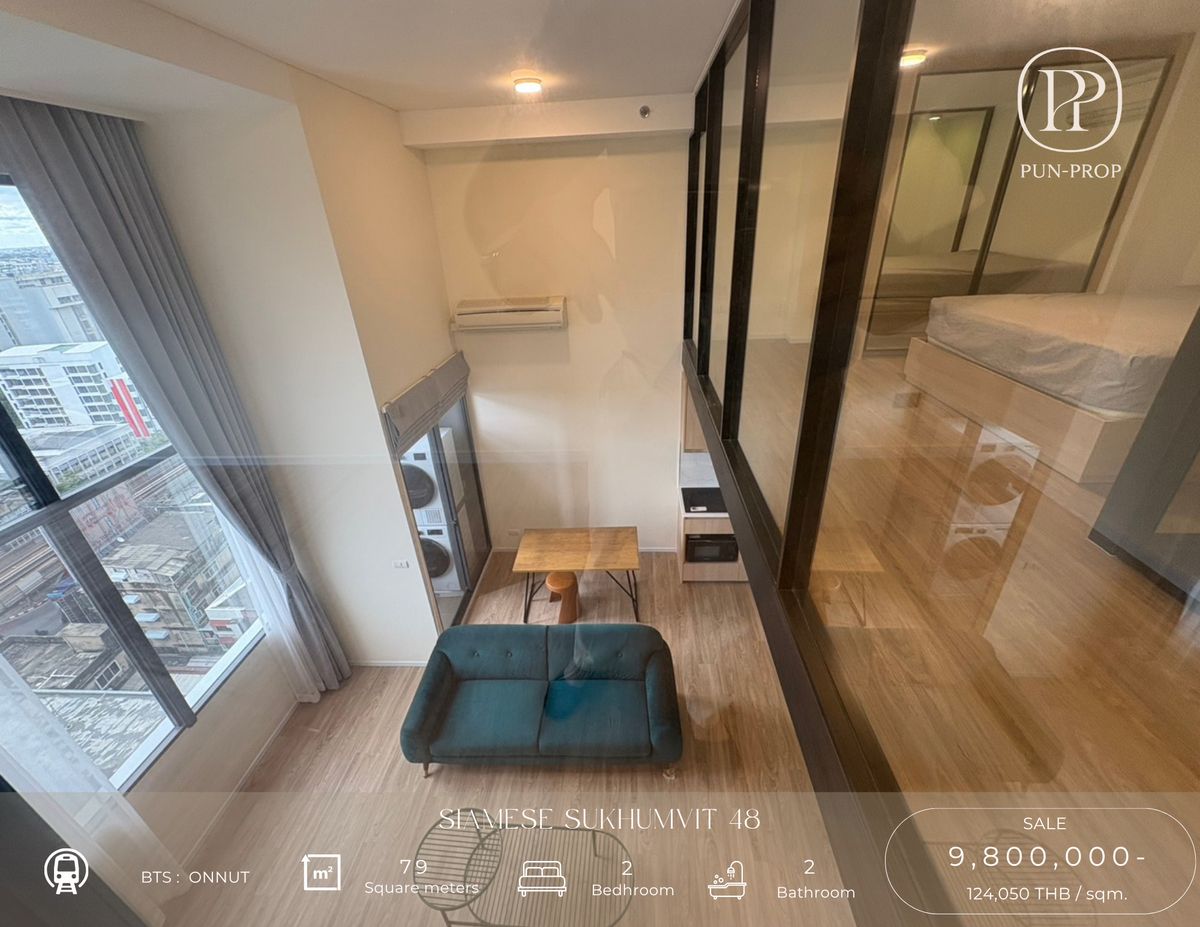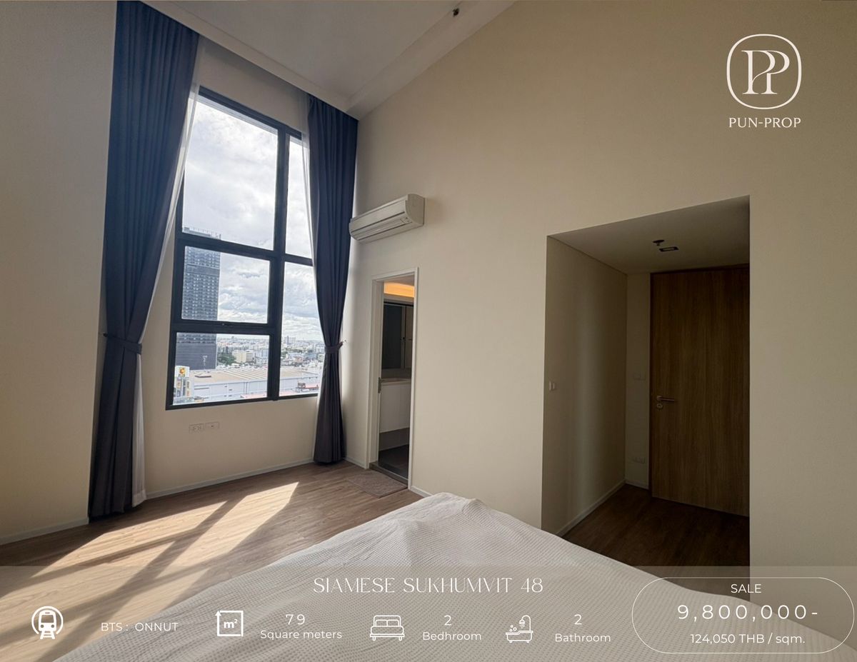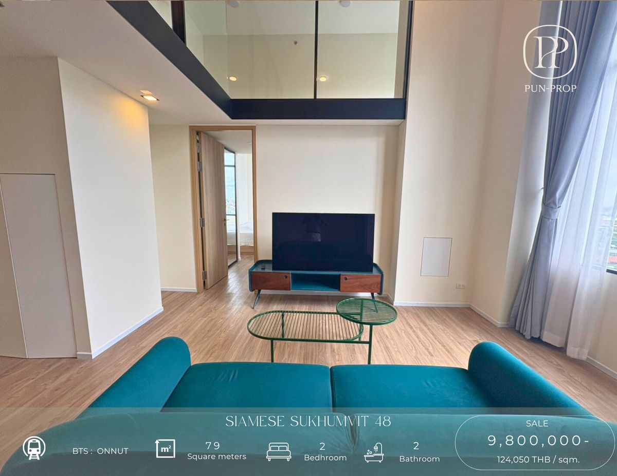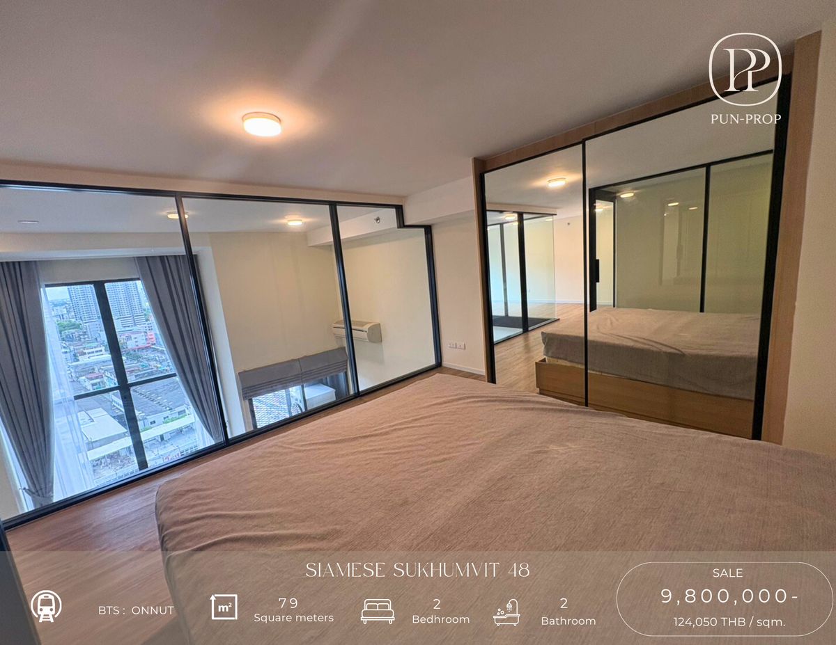 ✨ FOR SALE | Siamese Sukhumvit 48 ✨ 📍 Sukhumvit 48, Phra Khanong – Prime CBD Location 🏢 2 Bedroom Duplex Condominium Size: 79 SQM (≈ 124,000 THB/SQM) Floor: 11th Floor | High Ceiling | Duplex Layout Bedrooms: 2 | Bathrooms: 2 (with bathtub 🛁) Fully Furnished | Built-in Cabinets & Modern Interior Sale Price: 9,800,000 THB Transfer Fee: 50:50 (Buyer : Seller) 🏙️ Lifestyle & Facilities Luxury lobby & 24-hour security Swimming pool with skyline view 🏊‍♂️ Fitness center & yoga area 🏋️ Co-working lounge & library 📖 Garden area & relaxation deck 🌿 Parking & EV Charger availability ⚡ 🚆 Location Highlights BTS Phra Khanong – 600m (7 mins walk) BTS Onnut – 1 km (10 mins walk) Easy access to Sukhumvit & Rama 4 main roads Nearby: Gateway Ekkamai, Samitivej Sukhumvit Hospital, Major Cineplex Ekkamai, Emsphere, Emporium, EmQuartier, cafes & lifestyle malls 📌 Reference Code: SCD Contact number 📞 Contact Pun (PUN-PROP) 📱 Line ID: punking 📲 Tel / WhatsApp: Contact number 📧 Email: Contact email