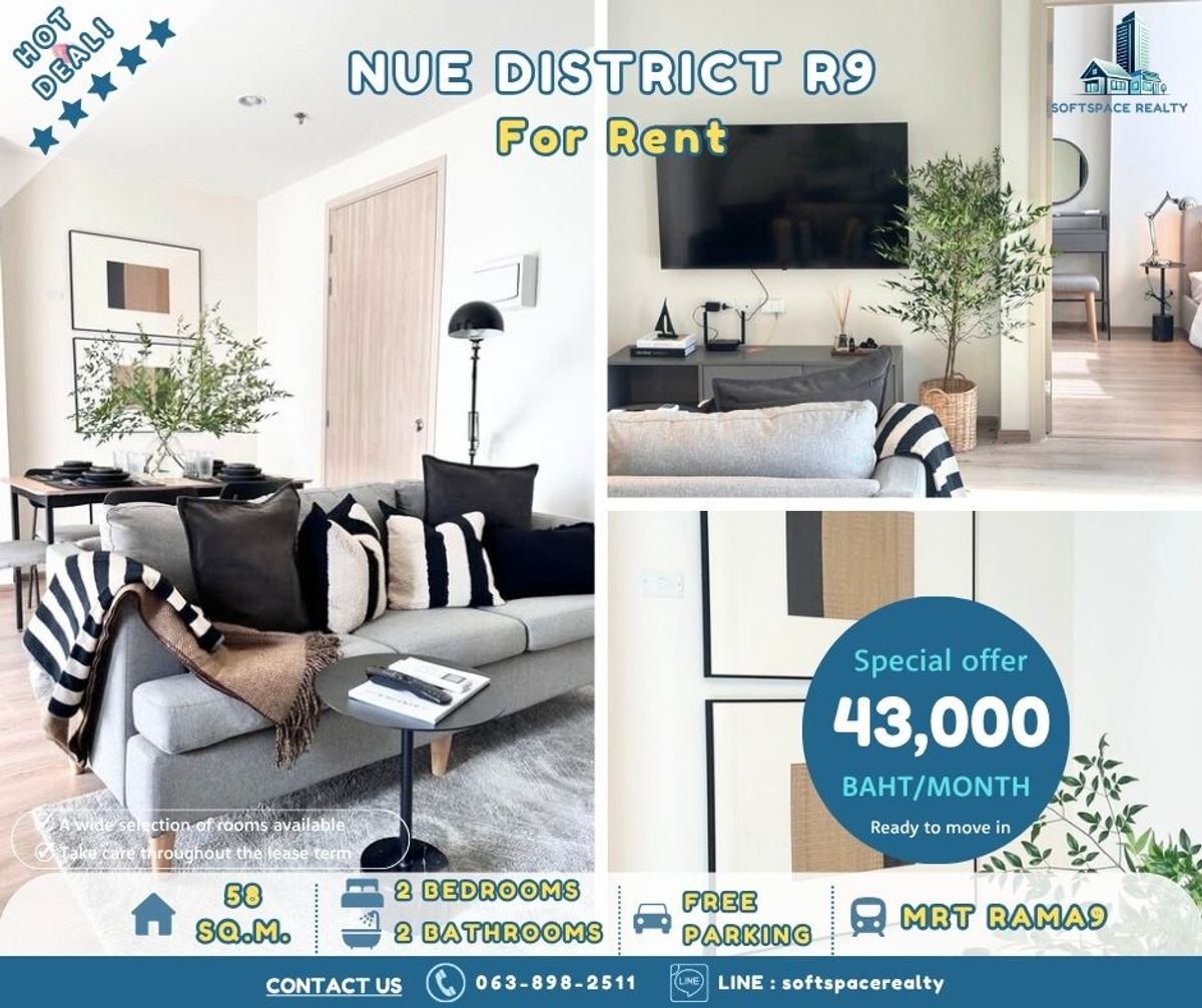 🏙️ NUE District R9 (For Rent) 🚈 MRT Rama 9 (3 mins walk) 🛏 2 Bedrooms 🛁 2 Bathrooms 📐 Size: 58 sq.m. 📍 Next to Central Rama 9, G Tower, Fortune Town ✨ Fully furnished + All electrical appliances included ✨ Free WiFi 💸 Rental Price: 43,000 THB/month • Minimum 1-year contract • 2-month deposit + 1-month advance rental • Ready to move in immediately 💁🏻‍♂️ Direct payment to the owner’s account, ownership verified before booking. 🩷 Full support throughout the rental period. 📹 Video call room tour available. 🌸 🌼 🌸 🌼 🌸 🌼 🌸 🌼 🌸 🌼 🌸 🏙️ ให้เช่า NUE District R9 🚈 MRT พระราม 9 (เดินเพียง 3 นาที) 🛏 2 ห้องนอน 🛁 2 ห้องน้ำ 📐 ขนาด 58 ตร.ม. 📍 ใกล้ Central Rama 9, G Tower, Fortune Town ✨ เฟอร์นิเจอร์ครบ + เครื่องใช้ไฟฟ้าครบ ✨ ฟรี WiFi 💸 ค่าเช่า: 43,000 บาท/เดือน • สัญญาขั้นต่ำ 1 ปี • มัดจำ 2 เดือน + ล่วงหน้า 1 เดือน • พร้อมเข้าอยู่ทันที 💁🏻‍♂️ จ่ายตรงเจ้าของห้อง ตรวจสอบกรรมสิทธิ์ก่อนจอง 🩷 ดูแลผู้เช่าและเจ้าของตลอดสัญญา 📹 มีบริการวิดีโอคอลชมห้องจริง 📞 ติดต่อ/Contact (SoftSpace AGENT) Tel: Contact number LINE OA: [https://lin.ee/6jjNHNQ] ID: @093kslhw | softspacerealty WhatsApp: Contact number WeChat: softspacerealty