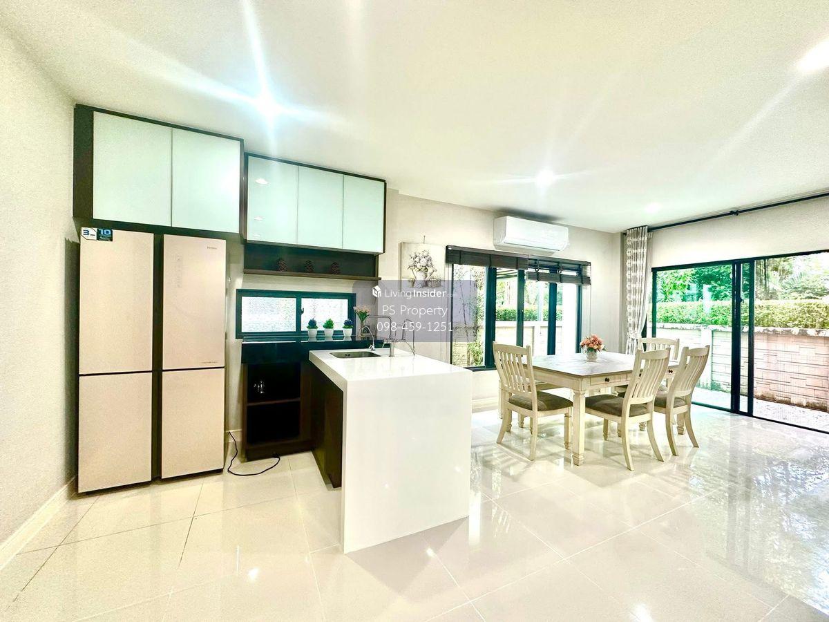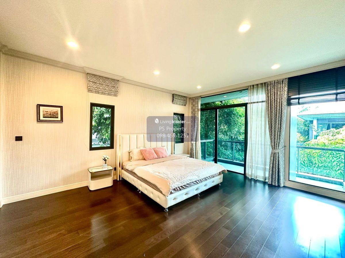 Price: 140,000 baht / month Usable area: 270 sq.m. Area: 73 sq.w. Floor: 2 5 bedrooms / 4 bathrooms / 1 living room / 2 parking spaces Amenities: CCTV, key card Access, fitness center, swimming pool, 24/7 security guard, co-working area, common area. Furniture included: TV, microwave, sofa, refrigerator, bed, air conditioner, water heater, Smoke Dispenser, shelf, TV cabinet, wardrobe, center table. House for rent! convenient transportation, near BTS, near the expressway, fully furnished Ready for viewing. Interested please contact: 📞Call center: Contact number 📱Hotline: Contact number 📲Whatsapp: Contact number 🖱️Line: @psproperty https://lin.ee/d8bpOBs Website: https://www.ps-property.co.th/