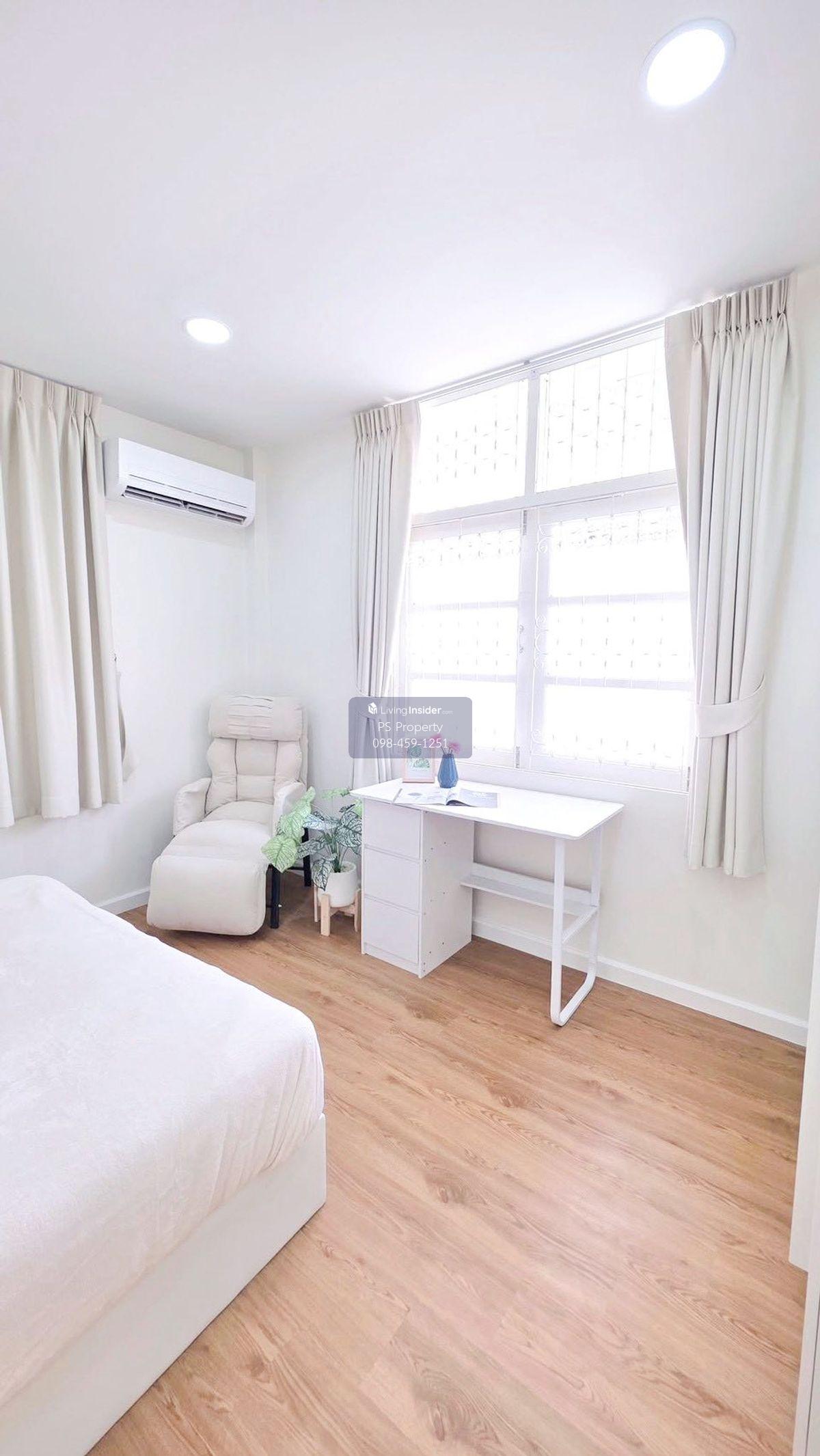 Price: 85,000 baht / month  Usable area: 100 sq.m.  Area: 60 sq.w. Floor: 2 4 bedrooms / 3 bathrooms / 1 living room / 2 parking spaces Amenities: CCTV, key card Access, fitness center, swimming pool, 24/7 security guard, co-working area, common area. Furniture included: TV, microwave, sofa, refrigerator, bed, air conditioner, water heater, Smoke Dispenser, shelf, TV cabinet, wardrobe, center table. House for rent! convenient transportation, near BTS, near the expressway, fully furnished Ready for viewing. Interested please contact: 📞Call center: Contact number 📱Hotline: Contact number 📲Whatsapp: Contact number 🖱️Line: @psproperty https://lin.ee/d8bpOBs Website: https://www.ps-property.co.th/