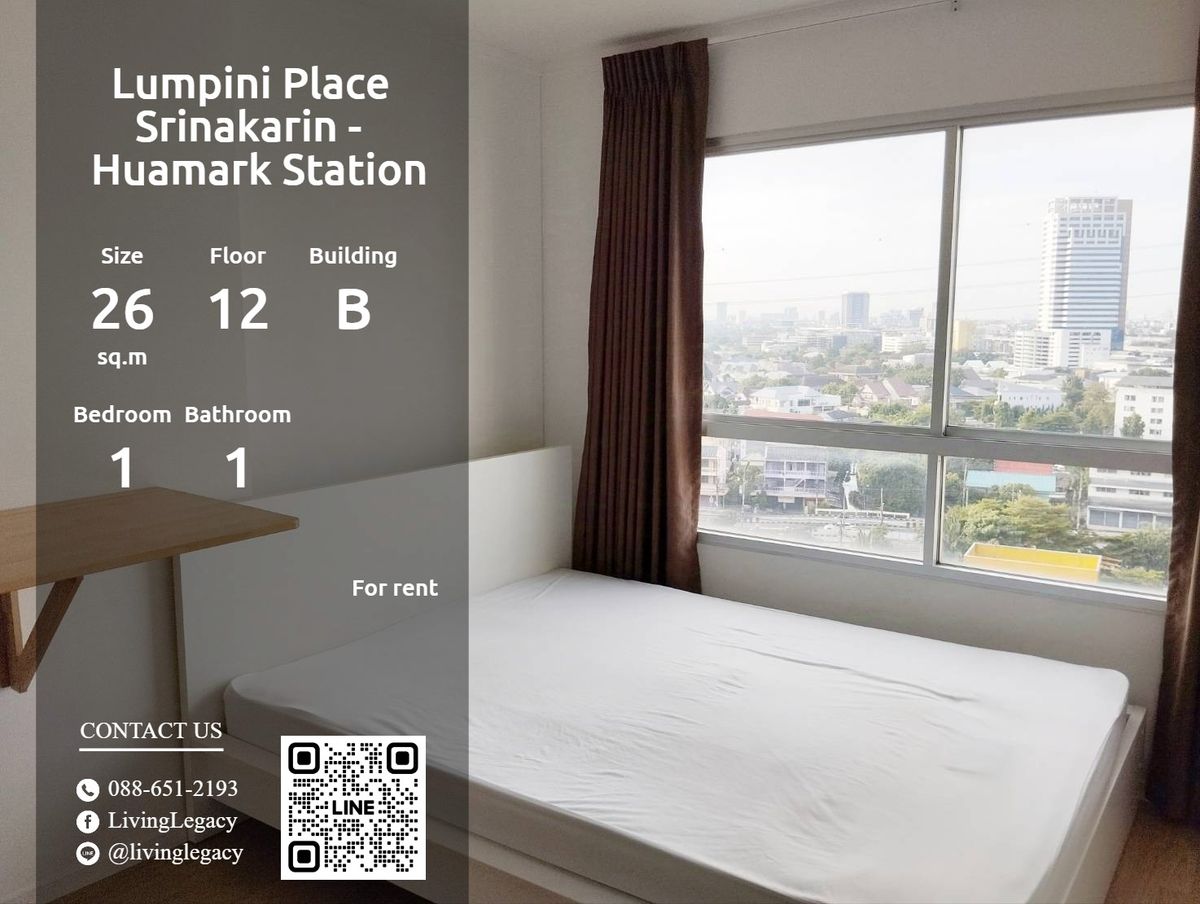 Slyed3 Condo for rent Lumpini Place Srinakarin - Huamark Station 26 sq.m., 12th floor, Building B Line ID: @LivingLegacy