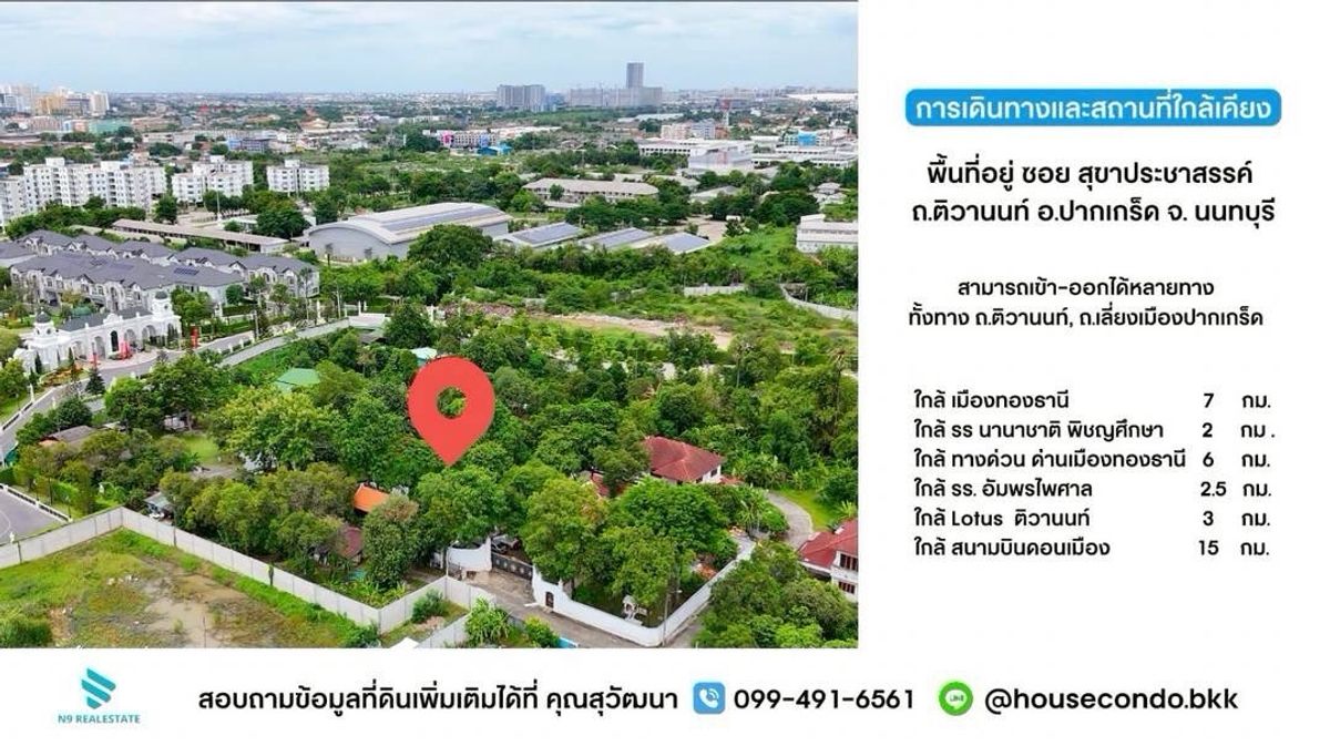 Land for sale+Thai houses, 2 rai, Pak Kred Tiwanon, near Muang Thong, Soi Su Kha Prachasan Expressway
