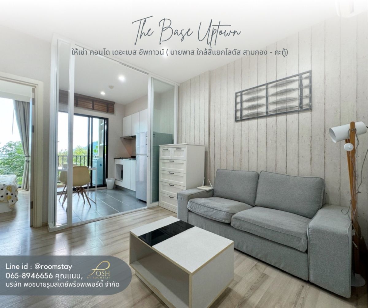 For rent The Base Up Town by Sansiri The Base Uptown Condo by Sansiri 1 bedroom condo With a resort style atmosphere Gives a feeling of privacy, suitable for relaxation On the bypass road location Near Tesco Lotus Intersection, Sam Kong -Kathu Located on A Building A Floor 3 Area 35 sq.m. With furniture and electrical appliances The central part consists of Swimming pool (Children and adult pool) Enough parking space Fitness, complete equipment And the central area of the lobby Responding to the level of residence First month rent Ret: 13,000 THB / Month (Special Price for Yearly Contract) RENTAL CONTAL CONDITIONS: • 2 Months deposit + 1 month advance Payment Base uptown condo by sansiri 1-Bedroom Condo Designed for Privacy and Relaxation. Located on Bypass Road, Near Tesco Lotus samkong-kathu intersection. Floor • 35 SQ.M. • Fully Furnished with Electrical Appliances Facilities • Swimming pool (Separate Kids and Adults Pools Center • Lobby and Common Area Perfectly tailored for a premium lightening Experience. Khun Ping K.PING (ENG.) Contact number Khun Nan Contact number Admin Line: @roomstay