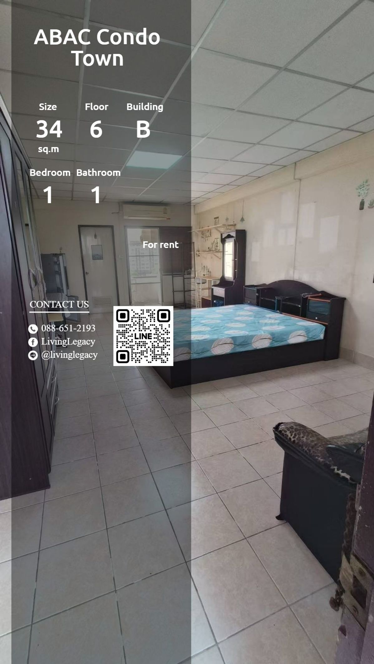 🏠 T3I1LK Condo for Rent ABAC CONDO TOWN 34 sq.m., 6th floor, Building B 1, 1 water ✨ Ready to stay immediately! Complete beautiful room Ready to move in! 🔍 Details - Number of bedrooms: 1 - Number of