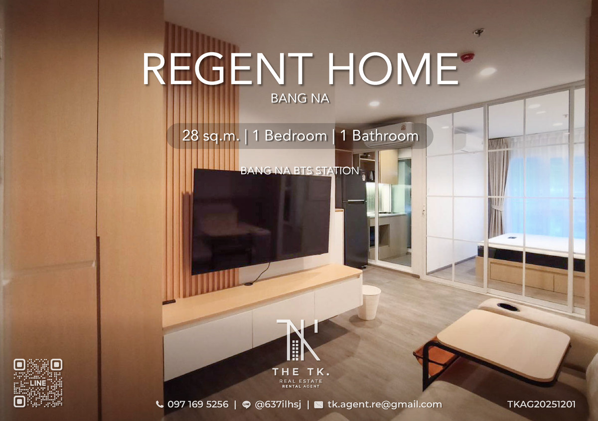 [THE TK.] Condo for rent near BTS Bangna "Regent Home Bangna" Beautifully decorated, fully furnished, best price | Contact Khun TK Line ID @637ilhsj Property Code…: TKAG20251201 Regent Home Bangna, an interesting option Got a room that was just the right size. at a better price But still able to travel easily as usual ✨ Project……………..: Regent Home Bangna Monthly Rent……: THB 12,000 Unit Type………….: 1 Bedroom, 1 Bathroom Unit Size…………..: 28 sq.m. Floor………………...: 8 corner room, BITEC Bangna view. Building…………….: D Facing…………..….: East Location……………: BTS Bangna Fully furnished with electrical appliances. List of electrical appliances - Air conditioning - TV 55" - washing machine - Water heater - Refrigerator - Microwave - Electric stove - Kettle furniture items - Bed with built-in side table - Built-in wardrobe - Sofa - Built-in TV shelf - Built-in kitchen counter - Built-in cabinet/storage shelf Facilities - elevator - Keycard floor lock - Car parking - Bicycle parking - 24 hour security - CCTV (CCTV) - Swimming pool - Fitness - Garden - Shops/restaurants in the project - System for reading license plates entering and exiting the project Nearby landmarks - BTS Bangna - Bangna Expressway entrance and exit point 200 meters. - Bitec - True Digital park - Central Bangna - Mega Bangna - 7-11 Minimum contract 1 year 1 month advance rent: 12,000 baht Damage insurance cost for 2 months: 24,000 baht To make an appointment to view the actual room, contact THE TK. REAL ESTATE RENTAL AGENT. 📞 PHONE...: Contact number 💬 LINE ID...: @637ilhsj (https://lin.ee/vrFUNkB) ✉️ EMAIL…..: Contact email Tracking channel TIKTOK….……: @the.tk.agent INSTAGRAM..: the.tk.agent YOUTUBE..….: @the.tk.realestateagent #CondoBangna #RegentHomeBangna #Condo near BTS #Condo for rent #THETK #THETKRENTALAGENT