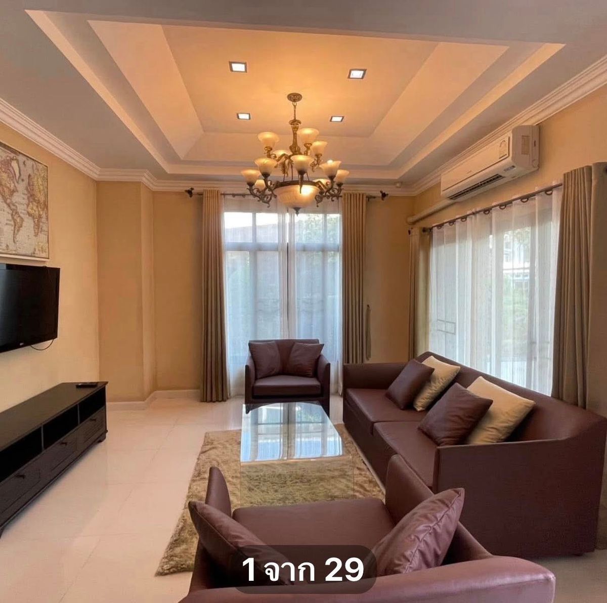 Detached house for rent! Clean and ready to move in! Only 95,000 baht/month! The details of the house are livable. (Focusing on people wanting to visit) Lets see a large area of 130 sq.m. in the Perfect Masterpiece project. This project has only 42 houses. The atmosphere is very private ✅ A lot of areas: 5 bedrooms, 4 bathrooms (with Jacuzzi in the big bathroom too!) 1 Working room/living room/storage room (Adjustable as convenient) 1 housekeeper with a private bathroom Usable area 450 sq.m. with a garden area around the house Parking 4-5 cars! ✅ Ready to be the most: There is a furniture as in the picture Ready to move in immediately! Good rental price only 95,000 baht/month (minimum contract 1 year) ✅ Easy location: Near Dao Dao International School (DBS)! Drive a car for a short while Near MRT, Tha It Station, only 3 km Next to Ratchapruek Road, easy to travel in both the city and out of the province ✅ Nearby places (Easy to travel): Mall: Central Plaza Westgate, Central Plaza Rattanathibet, Central Westville, The Walk Ratchapruek The hospital: Kasemrat Hospital, Rattanathibet Hospital Near Nonthaburi Lets see the real place! Simple route: Starting from Rattanathibet Road Heading for a city of Nakhon In via Maria Garden and observing the warm -up restaurant for about 200 meters. Perfect Masterpiece Ratchapruek Village is on the left. Before crossing the canal Interested, please contact the house! Contact Wipada (Nok) Contact number ID Line: @nokhome (with @ too)