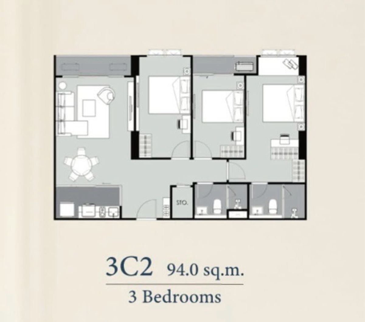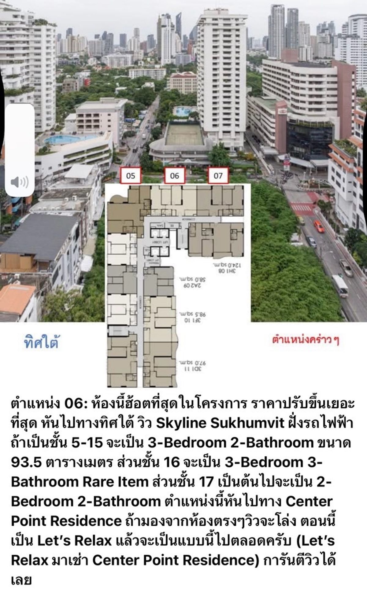 3 bedrooms, 2 bathrooms, 93.50 sqm. Floor 9, south (position 06). There is no building covering the width of the unit. The position of this room is south and is a strong view forever.