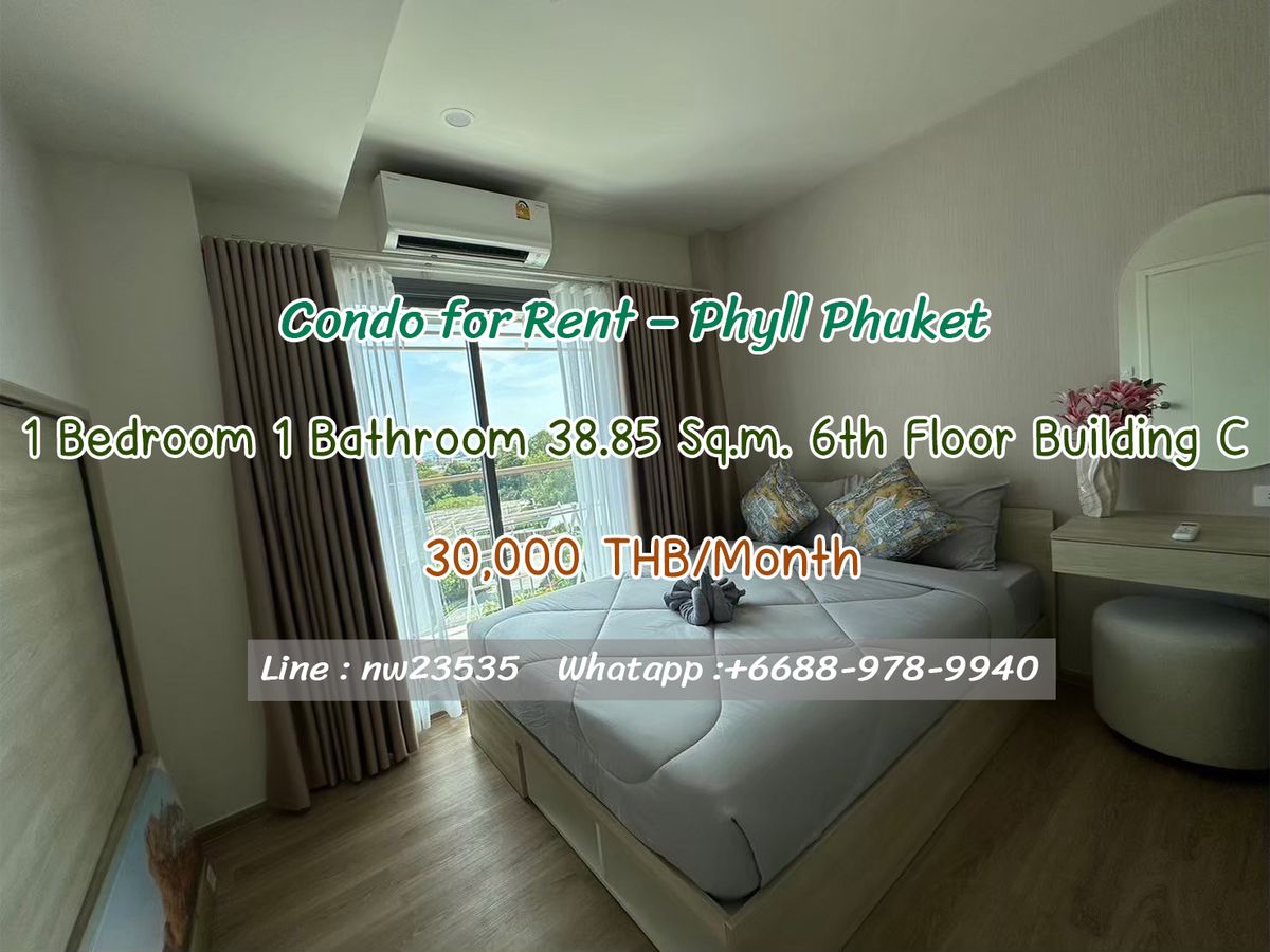 ✨ Condo for rent - Phyll Phuket (Building C) ✨ 1 bedroom / 1 bathroom / 1 kitchen / 1 parking 📐 Size 38.85 sq.m. 💰 Price only 30,000 baht/month (1 year contract) 🔑 2 month warranty + 1 month in advance 📍 Ready to move in immediately! ---------------- 📞 Contact channels K.Nick: Contact number Whatsapp: Contact number Line ID: NW23535 Click: Line.me/rzz0j7a