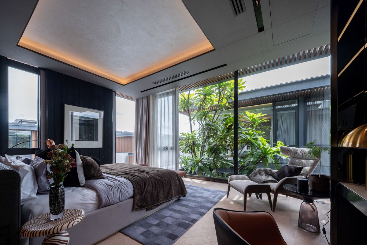 Single house, Ratchada, in the heart of the city near the Soleil MRTEL in the area of ​​203 sq.w. 6 bedrooms, 9 bathrooms, 6 parking One of the specialty of this project Is to be a single house, Ratchada Located on Ratchadaphisek Road, near MRT Wongsawang Station And 900 meters away from Srirat Expressway, helping to travel to the center of Rama 9 - Asoke - Sukhumvit or Ratchaphruek -Pinklao And this location is surrounded by lifestyle, such as leading hospital shopping centers With complete facilities Suitable for business owners, investors or new generation leaders who want privacy. It can be said that it is close to prosperity in all aspects Providing exclusive privacy With only 5 Sonle Residences Co., Ltd. to emphasize the true Super Private Residence, all of which are designed under the concept. Sophisticated Modern Tropical that opens the wind and natural lights through the Cordid Garden. With the Infinity Edge swimming pool on the 2nd floor and the Over Flow waterfall that creates a relaxed atmosphere There is also a full Smart Home function and premium material in every detail. To live superior every day