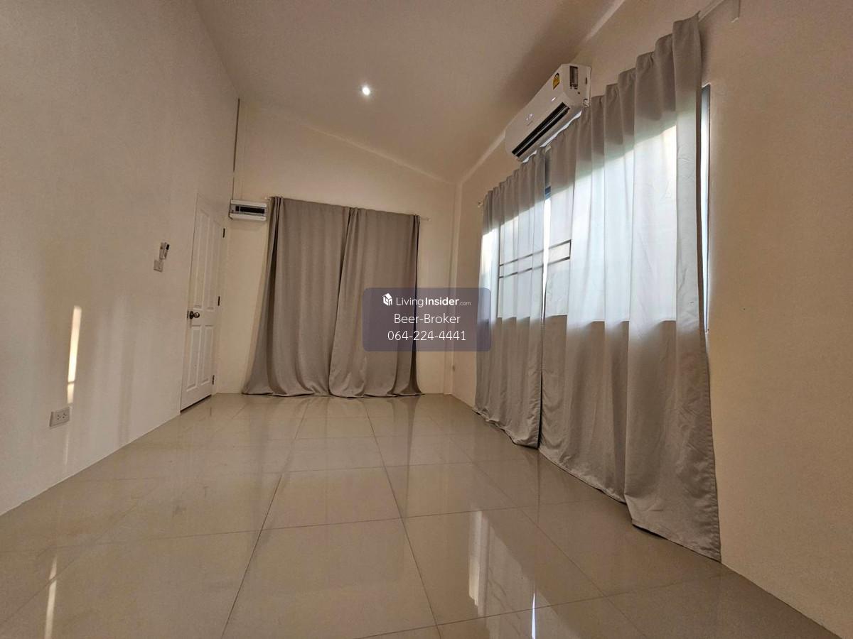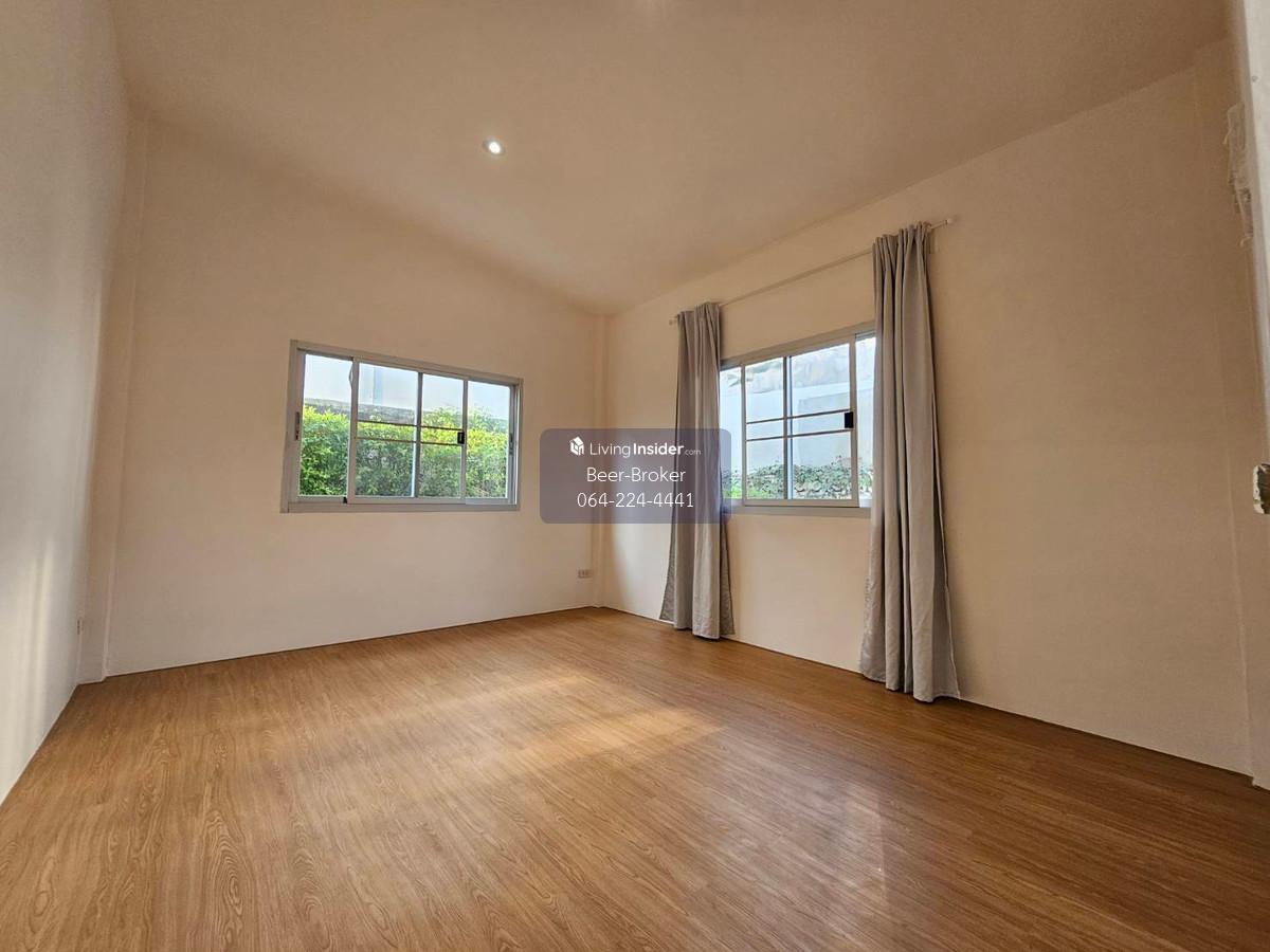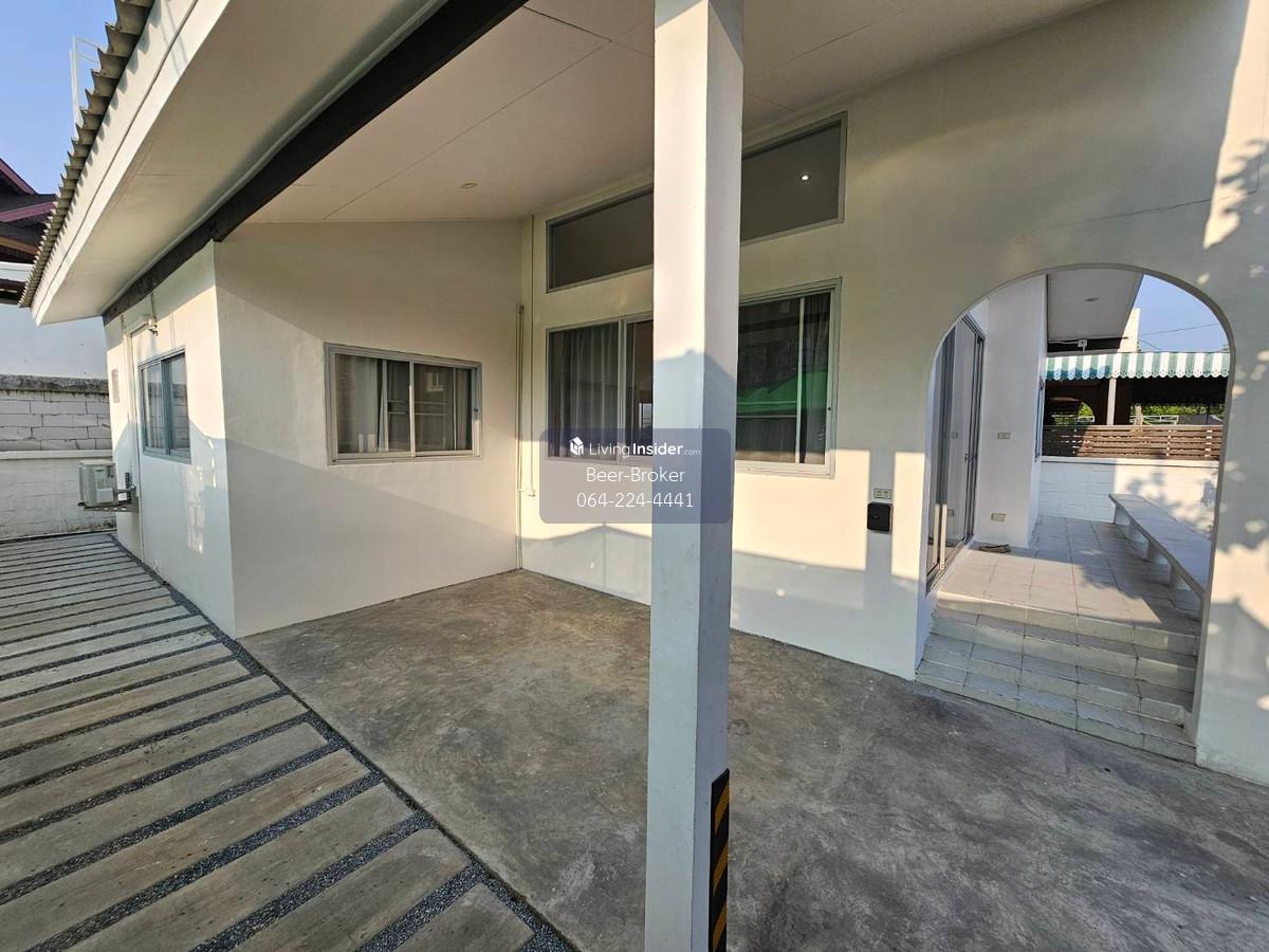 house near Kasetsart University, Bangkhen, with access from many different streets. 3 bedrooms, 2 bathrooms. Details: - 1-story single house - 3 bedrooms, 2 bathrooms - 120 sq m, 56 sq wah - 3 bedrooms, 2 bathrooms, 1 kitchen, 1 living room - 2 balconies (front/back) - Parking for 1-2 cars - 120 sq m, 56 sq wah, single story - Suitable for residential rental or home office business - 1 air conditioner - Curtains - Spacious house, good ventilation, trees, access to multiple side streets - No furniture For more information, please contact us at Khun Beer : Call Contact number Line ID : @beerbroker (please include @) or Click 👉 https://lin.ee/pqQqdgP At your service.