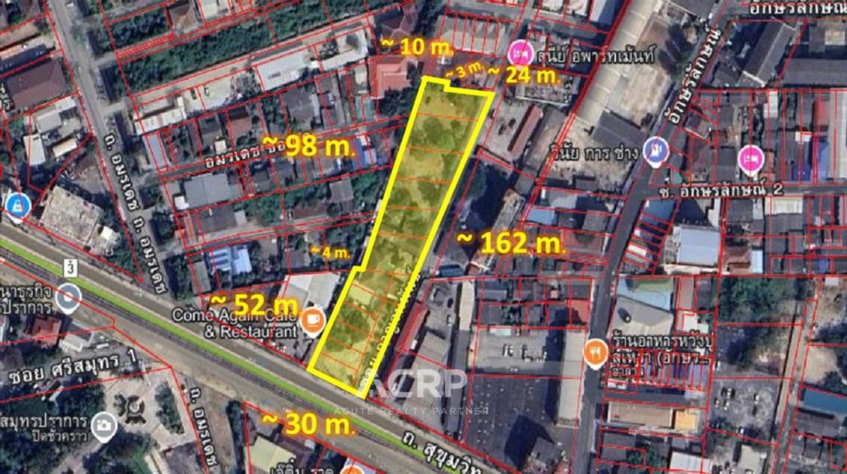 Land for sale on Sukhumvit Road, In the Heart of Pak Nam A location with High Potential Large Plot of Land Prime Location Near BTS Pak Nam Total Area of ??over 2-3-95 Rai Width approximately 30 Meters Depth 162 Meters The land is Located on Sukhumvit Road On the Main Road Convenient to Travel Red urban plan P.3 Suitable for Developing Commercial Projects or Full-Scale Residential Price 286,800,000 Baht Suitable for Premium residential projects Shopping malls, community malls Private hospitals or large clinics Office buildings or mixed-use projects Nearby landmarks BTS Pak Nam (just a few minutes to the station) Samut Prakan Technical College Samut Prakan Immigration Office Provincial Hall / Land Office / Attorney General's Office Main government agencies in the province