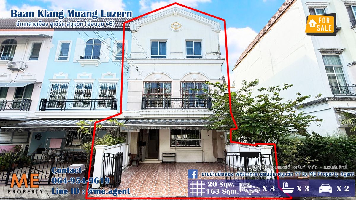 Selling and renting 3-story townhouse, Ban Klang, Lucerene, Sukhumvit (Onnut 46) after the angle with fir and electrical appliances near Sukhumvit Thonglor and near BTS-Onnut Station, call Contact number (TP11-20) . -Location of 20 sq.w., living space 163 sq.m. - 3 bedrooms, 3 bathrooms, 1 kitchen - 1 Multipurpose area - 2 Parking - Ready to furniture and electrical appliances - 3 air conditioners . Rent 25,000 baht/ month Selling price 4.5 million baht/transfer fee, half each. Interested, please contact us at Me Property Agent Call Contact number K. Oh (TH/ENG/JP) Line: @me.agentig: mepropertyagent [Https://www.instagram.com/mepropertyagent?igsh=mwo0dmzhagf2n3j5bw=] Tiktok: Meagent [https: //www.tiktok.com/@meagent? Is_from_webapp = 1 ...] YouTube: @meagent5131 [https://www.youtube.com/channel/UCDOL3EFLB4IIXPTUGJVRMPW] Follow the beautiful house on the Mee page. FB: Secondhand house for sale Phatthanakan-Onnut-Sukhumvit 77 By Me Property Agent [https://www.facebook.com/mepropertyagent] Facilities -Club heaus, swimming pool -Fitness, Park -Playground, CCTV, Security 24 hours Nearby places - Seacon Square 5 km. - Central Bangna 5.5 km. - Paradise Park 4 km. - Triam Udom Phatthana School 6 km.- Bangkok Pang Phuang 5.5 km. - Wells 6 km international school - Suan Luang Rama 9 - Panya Hospital, Samitivej Hospital- Sukhumvit 62 Expressway Kanchanaphisek Ring Road #Mepropertyagent #Ancestopservice #House for sale #House On Nut #Ban Srinakarin #Phatthanakan #Secondhand house ready #Secondhand house in the city #Baan Klang Lucerne #Sukhumvit #Onnut 46 #Soi Sukhumvit 77 #3 layers of townhouse #Sell and rent #Cheap #3 bedrooms #Forrent #Forsale #Urgent Sale #Urgent Rent #Near Seacon Square #Srinakarin #Central Bangna #Near Skytrain #BTS #Near me
